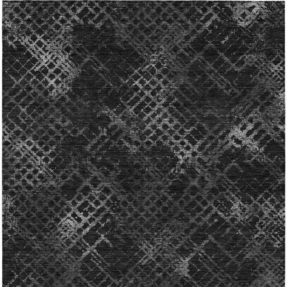 9' X 12' Charcoal Gray And Silver Geometric Washable Indoor Outdoor Area Rug