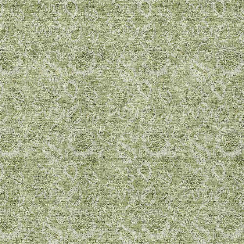 9' X 12' Green Blue And Ivory Floral Washable Indoor Outdoor Area Rug