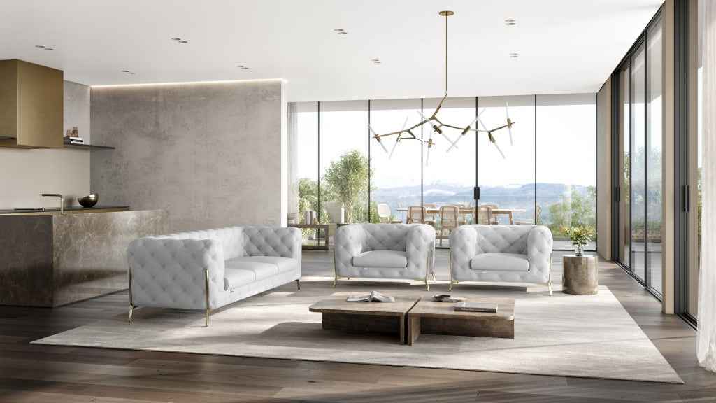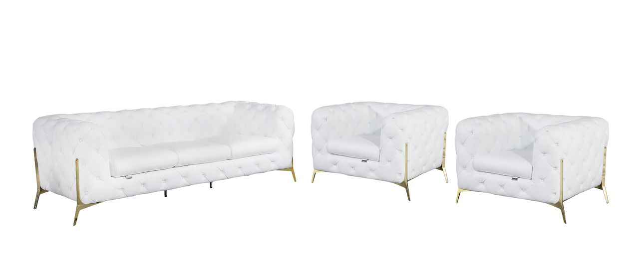 Three Piece Indoor White Italian Leather Five Person Seating Set