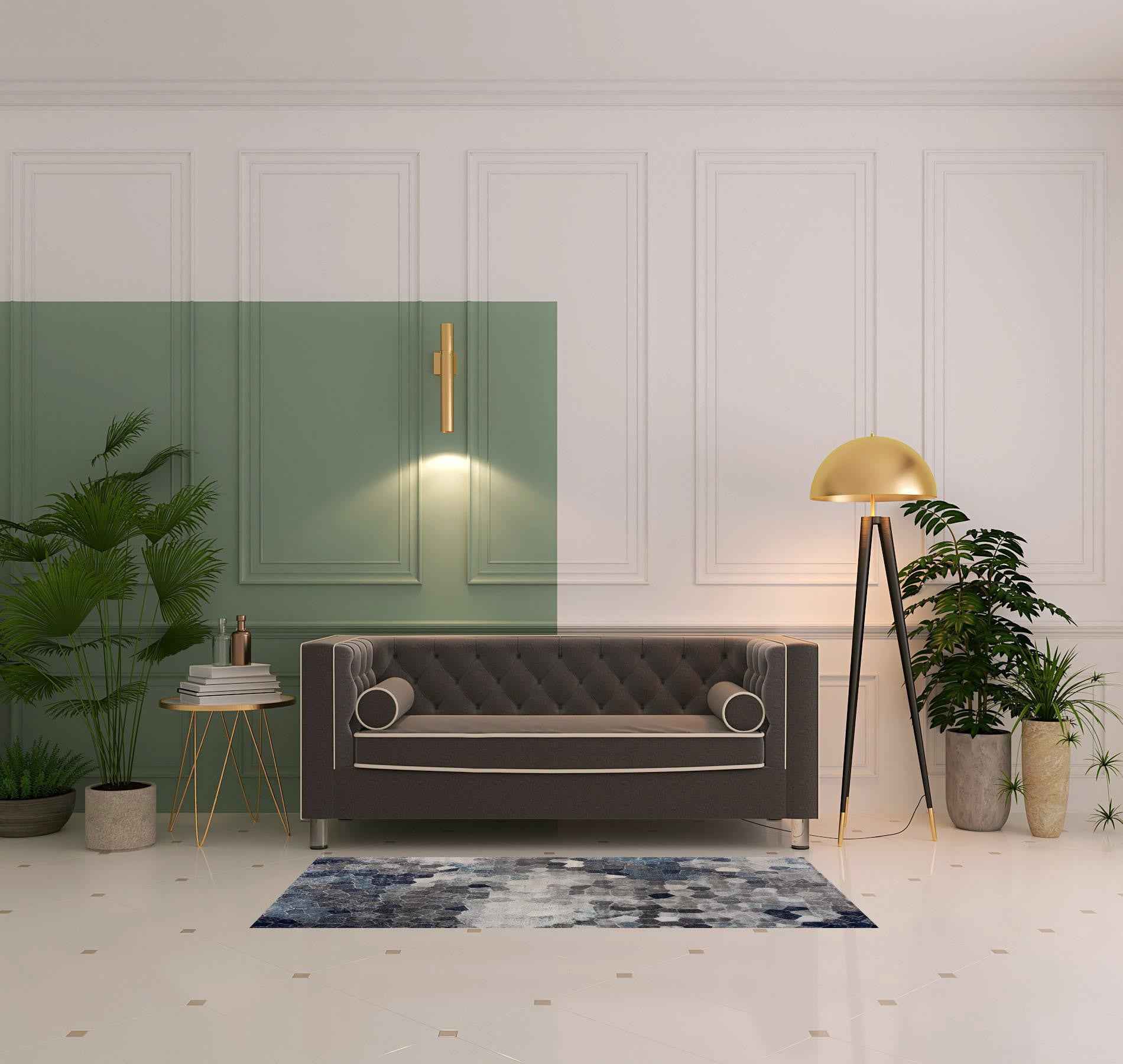 2' X 6' Navy Geometric Area Rug