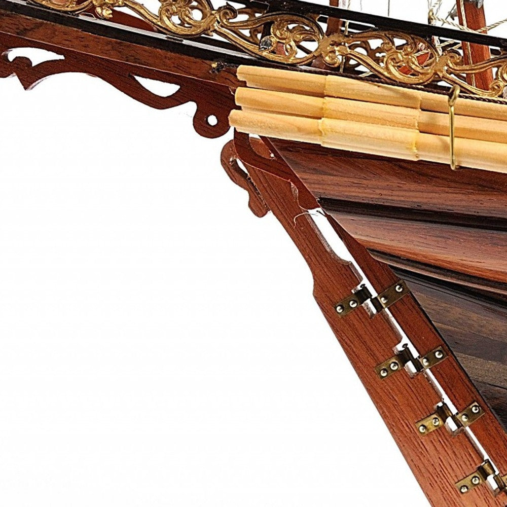 27" Brown Manufactured Wood Boat Hand Painted Sculpture