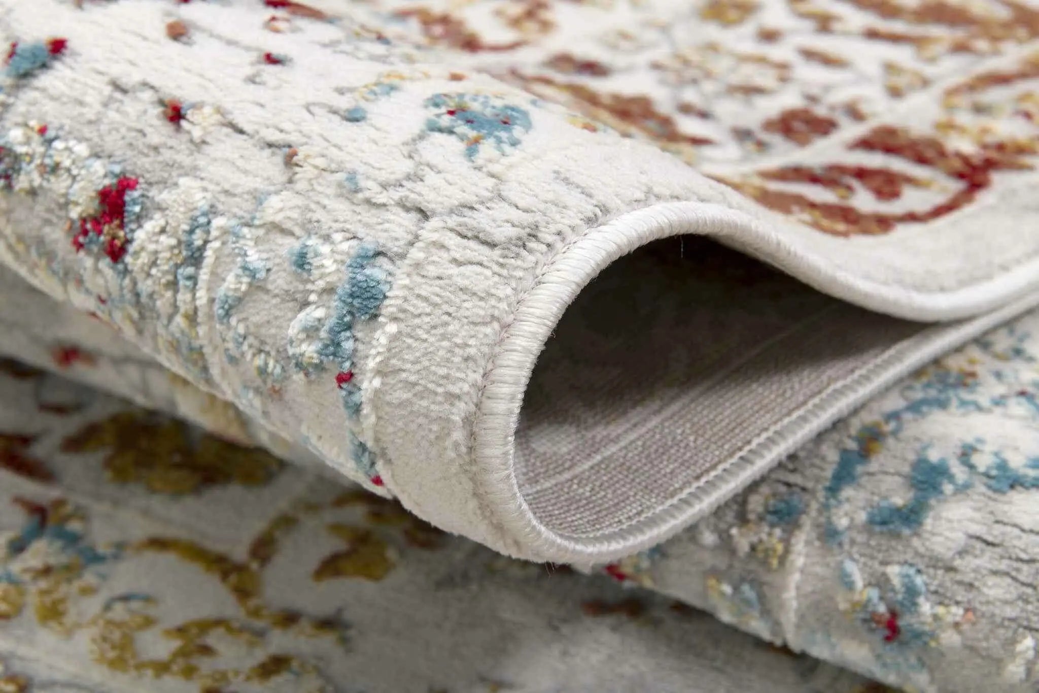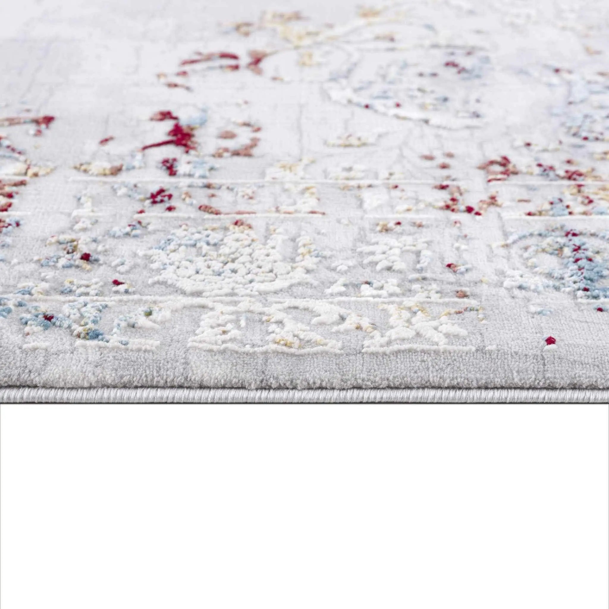 Combining the aesthetics of abstract art with timeless patterns, this Gray and Beige Distressed Ornate Area Rug exhibits a unique taste of trend and tradition to spruce up your living space. The distressed shades of gray overlying on the stunning base with intricately decorative designs in brick red, beige, and blue creating a weathered effect for visual appeal. Built to withstand wear and tear, this rug is made in Turkey with premium polypropylene fibers ensuring stain resistance and easy care. It feels super soft and sumptuous on the touch owing to its dense pile construction which makes it an ideal choice for high traffic indoor areas. Roll this neutral-toned area rug on the floor and it will blend in with any interior theme upholding a rich vintage vibe into your space. 56” x 32” x 0.8”