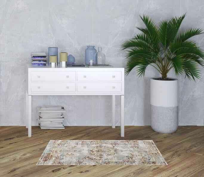 3’ X 5’ Gray And Beige Distressed Ornate Area Rug
