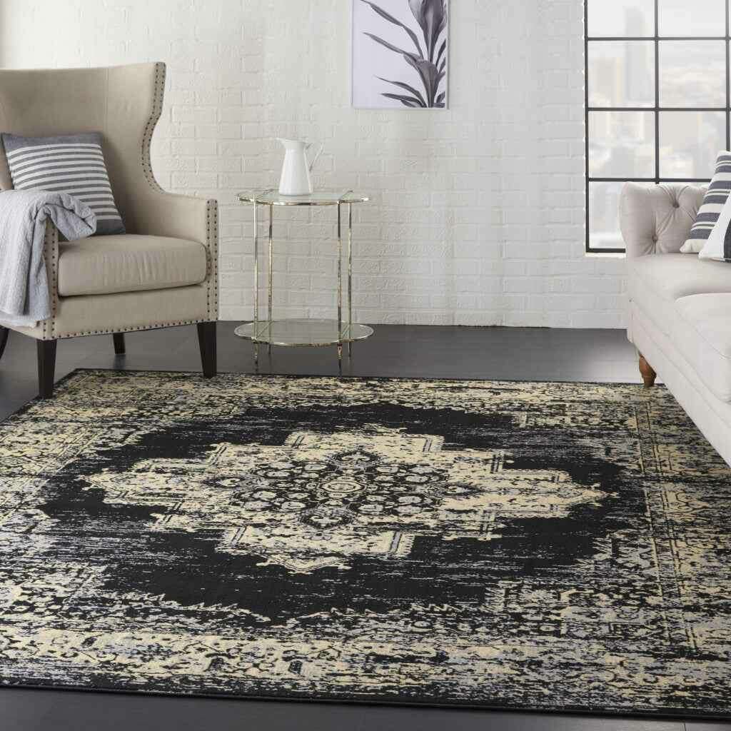7' X 10' Cream Damask Power Loom Area Rug