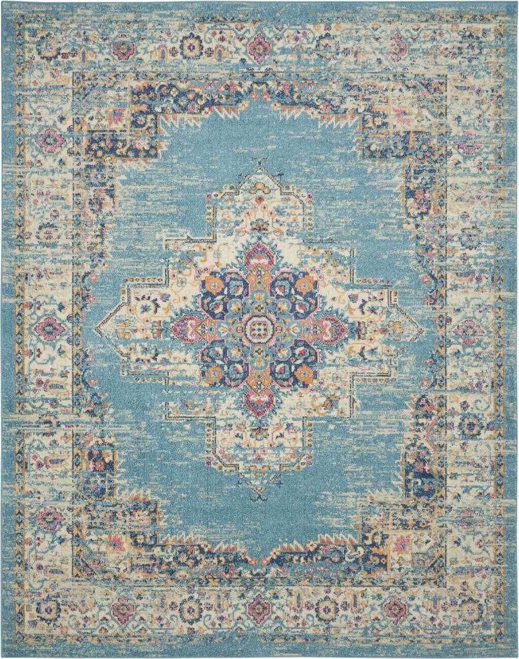 This 8' x 10' light blue southwestern power loom area rug, is a great way to add warmth to a room. This rectangle shaped rug features a southwestern design in light blue to give it visual interest. A classic shape marries with good looking design for your space Made in Turkey, this rug offers high quality combined with good looking designer sensibilities. Place this area rug against a hardwood or tile floor and it will enliven your living space with style and sophistication. 1" H x 96" W x 120" D