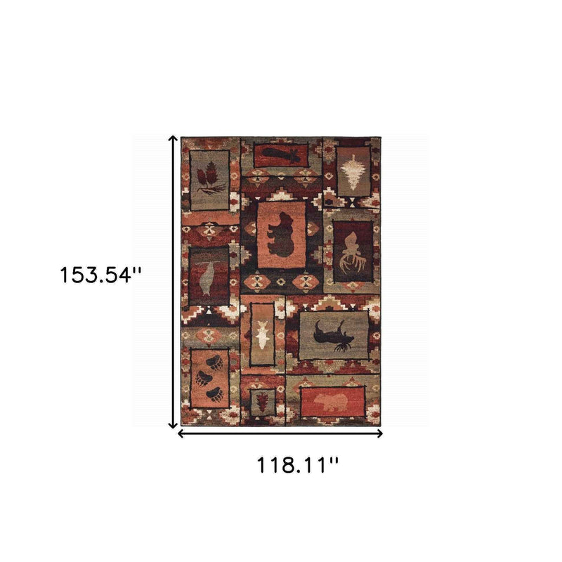10' X 13' Brown Rust Berry Sage Green Gold And Ivory Southwestern Power Loom Stain Resistant Area Rug