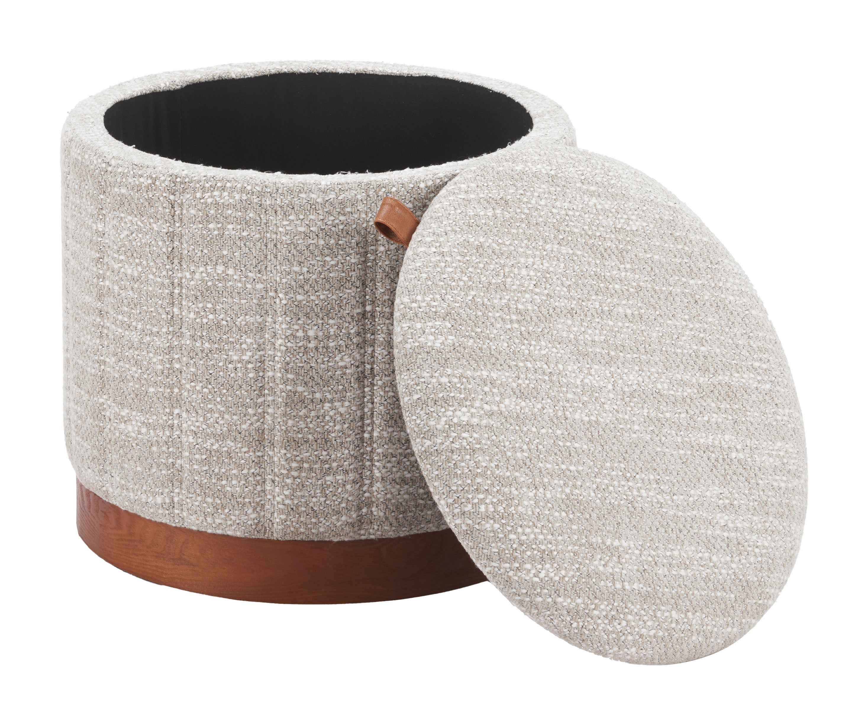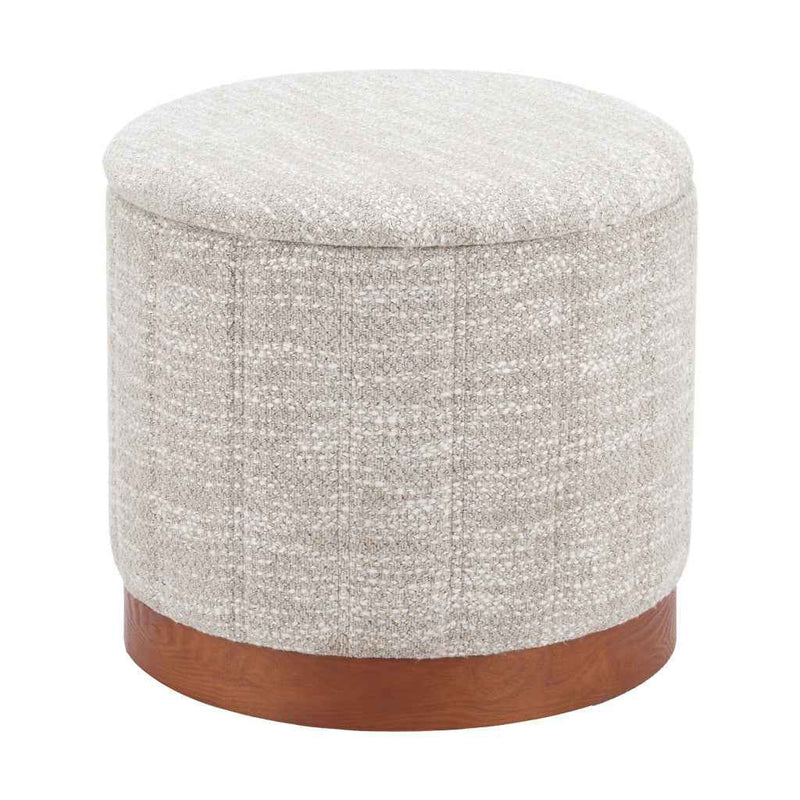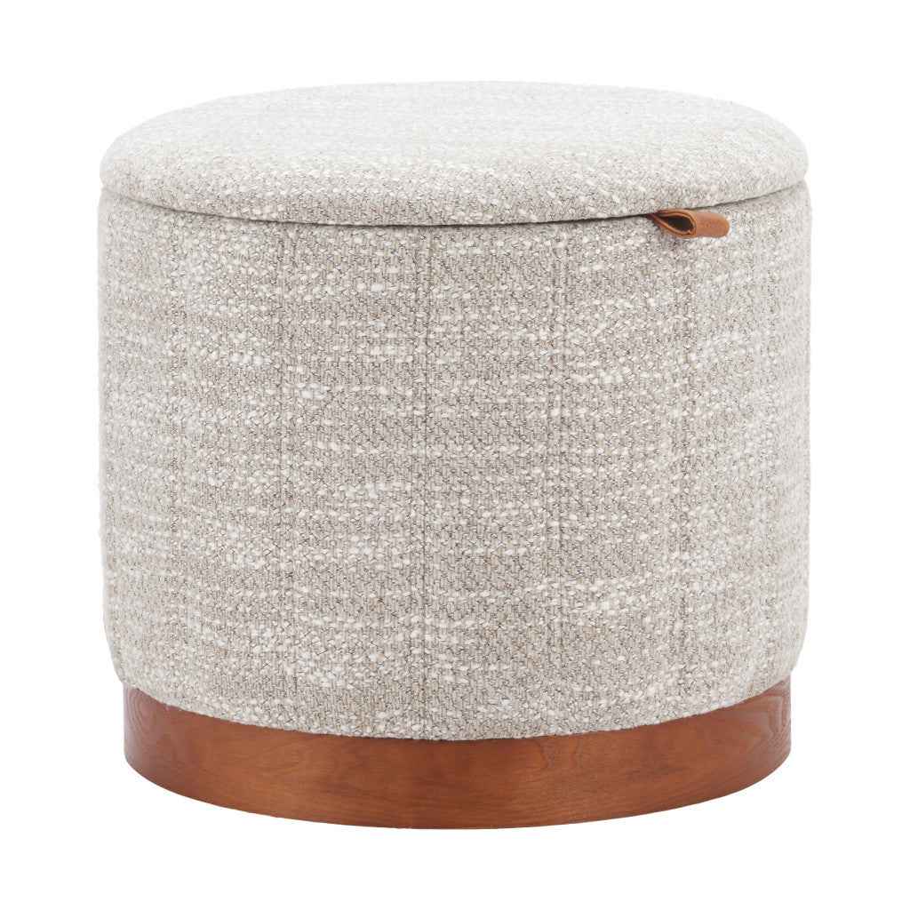 21" Gray and Brown Fabric Round Ottoman With Storage