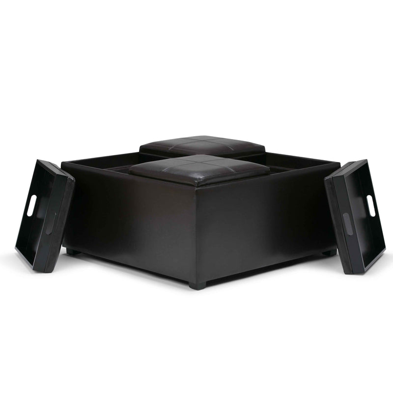 35" Brown and Dark Brown Leather Cocktail Ottoman With Storage