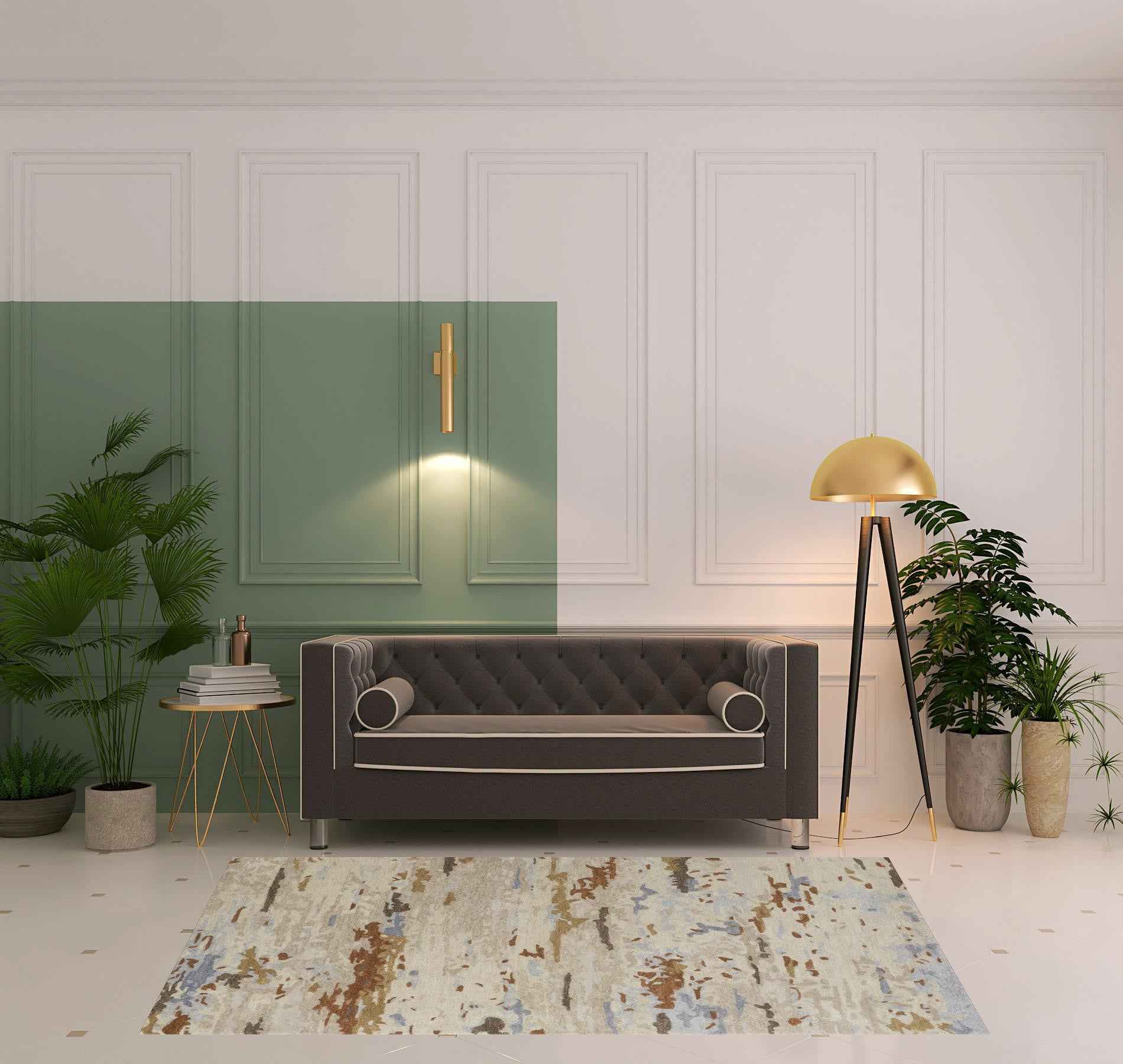 Set an inviting tone in your space with this 5' x 8' ivory blue and brown wool abstract tufted handmade stain resistant area rug. This rectangle shaped rug features a abstract design in ivory blue and brown to give it visual interest. A classic shape marries with good looking design for your space Ideal for spaces with kids and pets, this rug is stain resistant to help repel stains and spilled liquids. Area Rugs help to give warmth and sense of home to your space. 0.47" H x 60" W x 96" D
