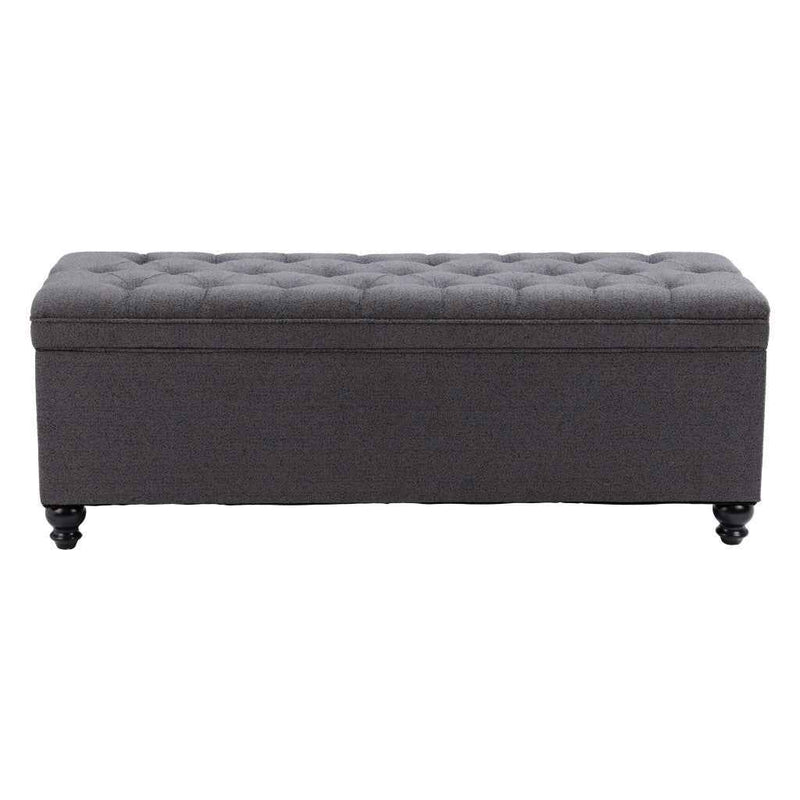 56" Gray and Black Fabric and Solid Wood Upholstered Bench