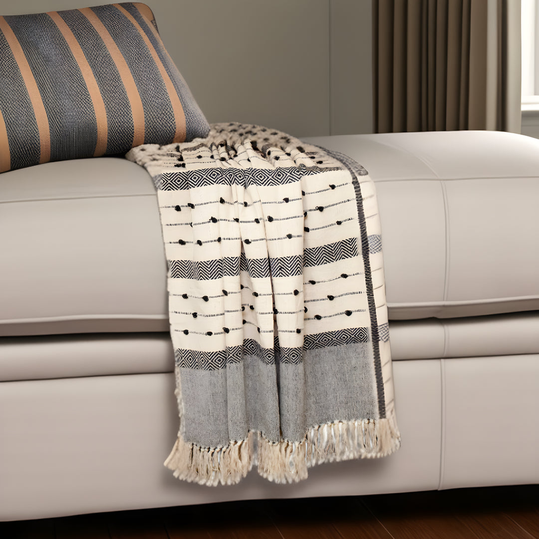 Beige And Black Woven Wool Solid Color Reversable Throw Zum Inhalt springen