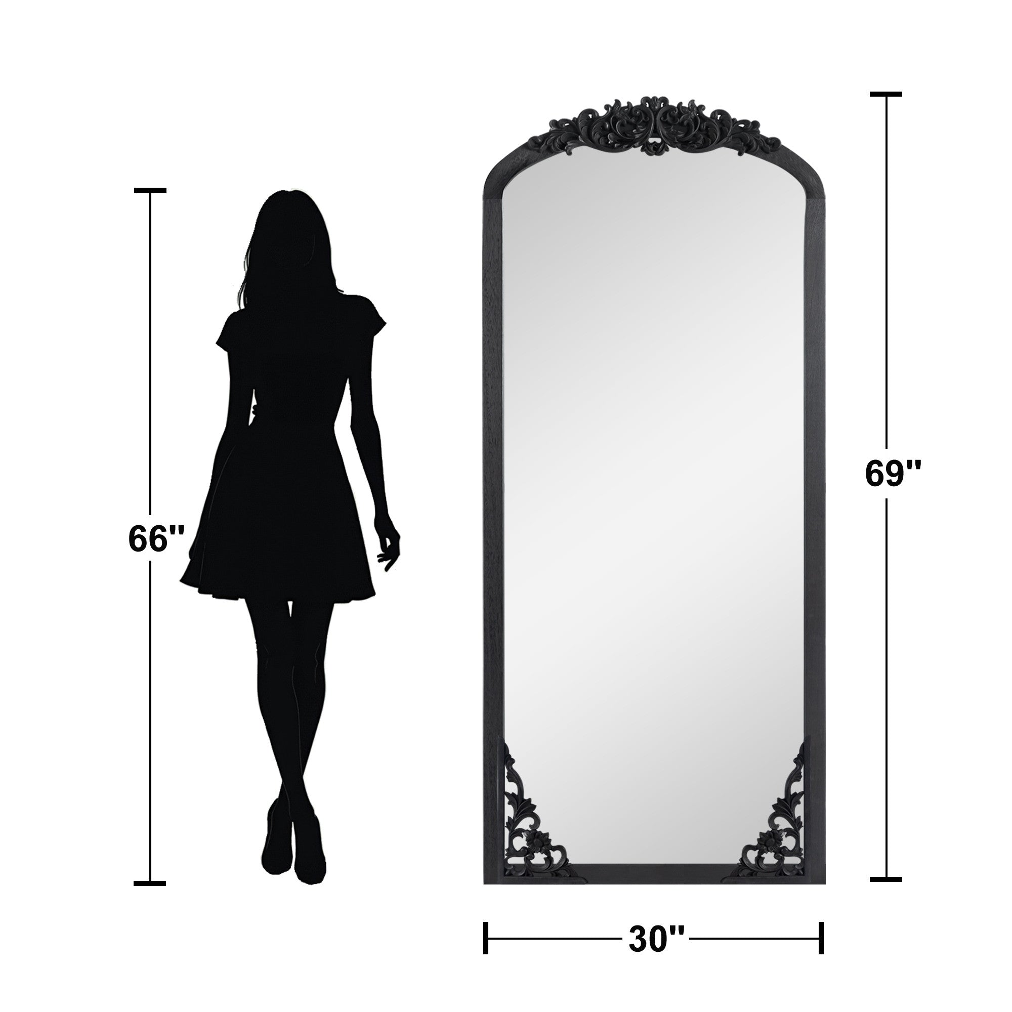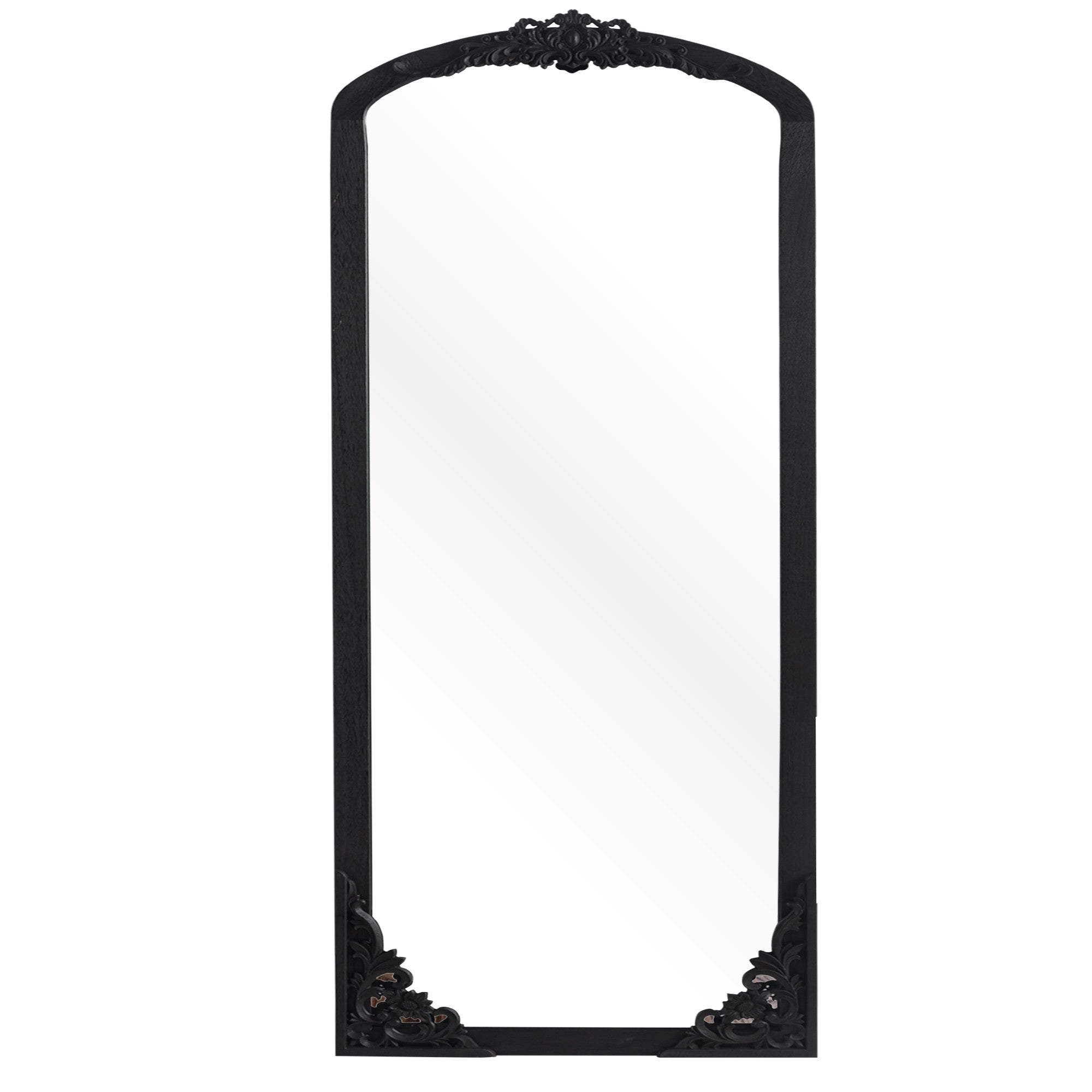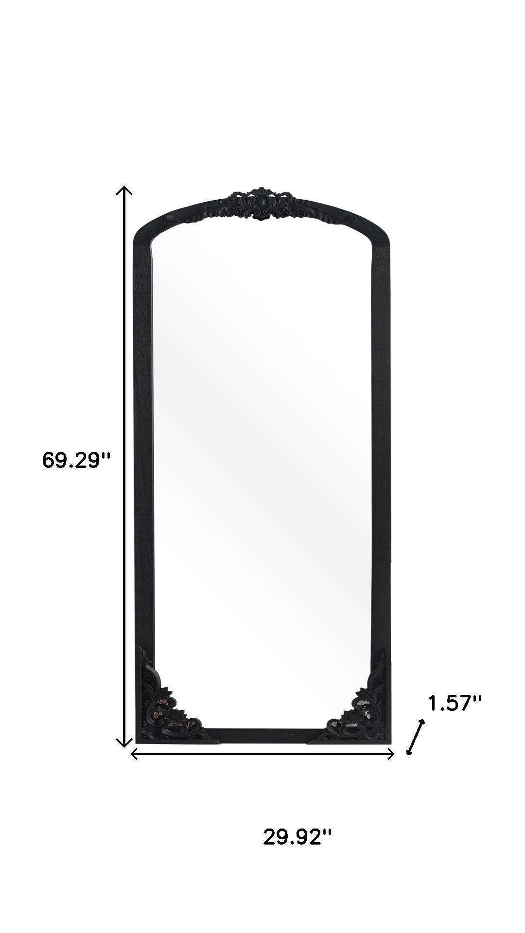 Black Wood Arch Freestanding Ornate Framed Accent Mirror