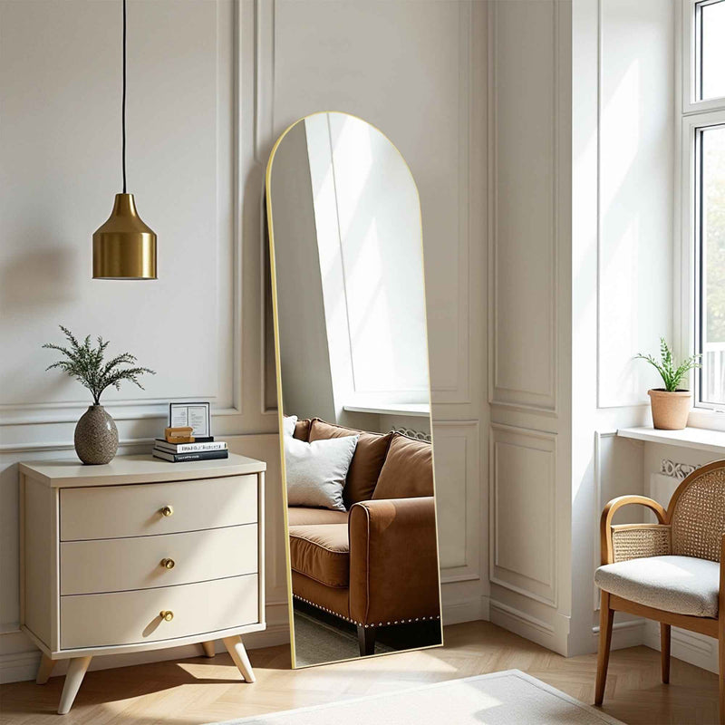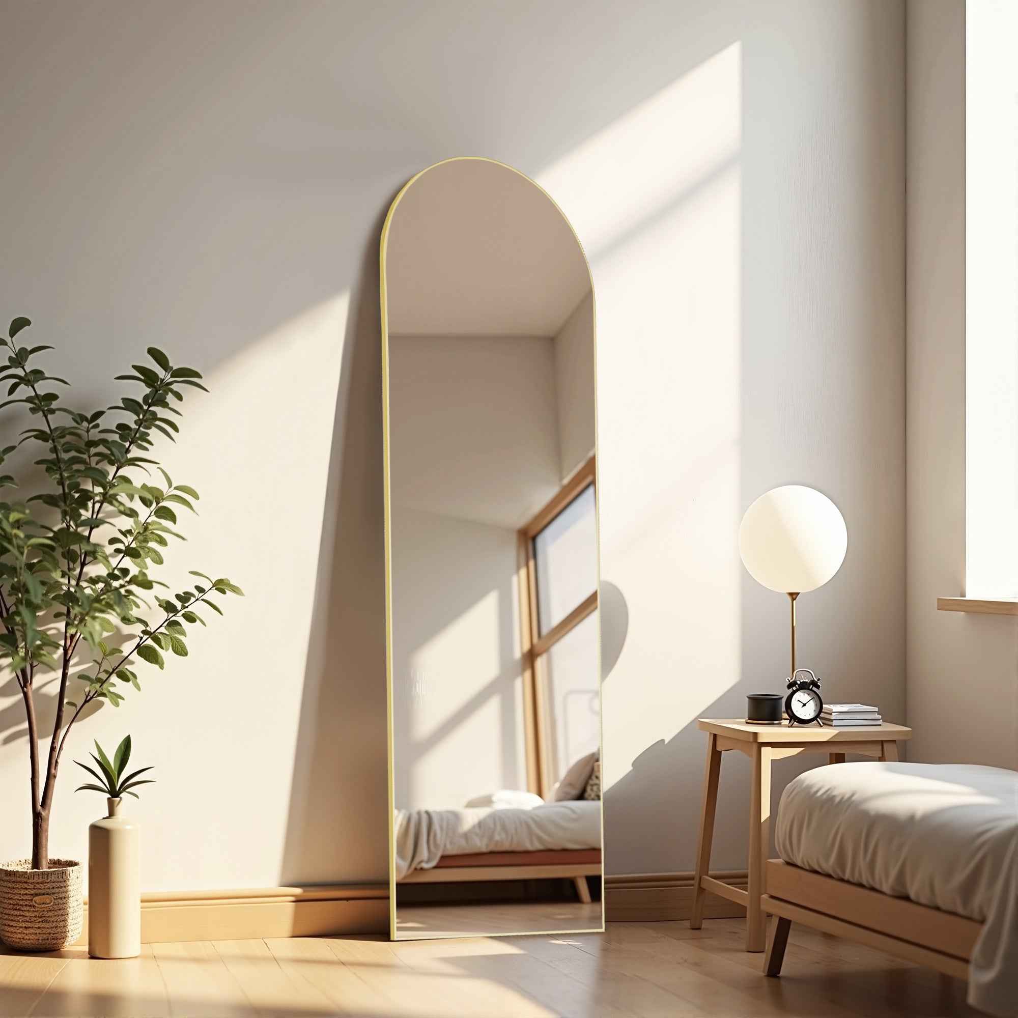 Gold Aluminum Arch Freestanding Ornate Framed Accent Mirror