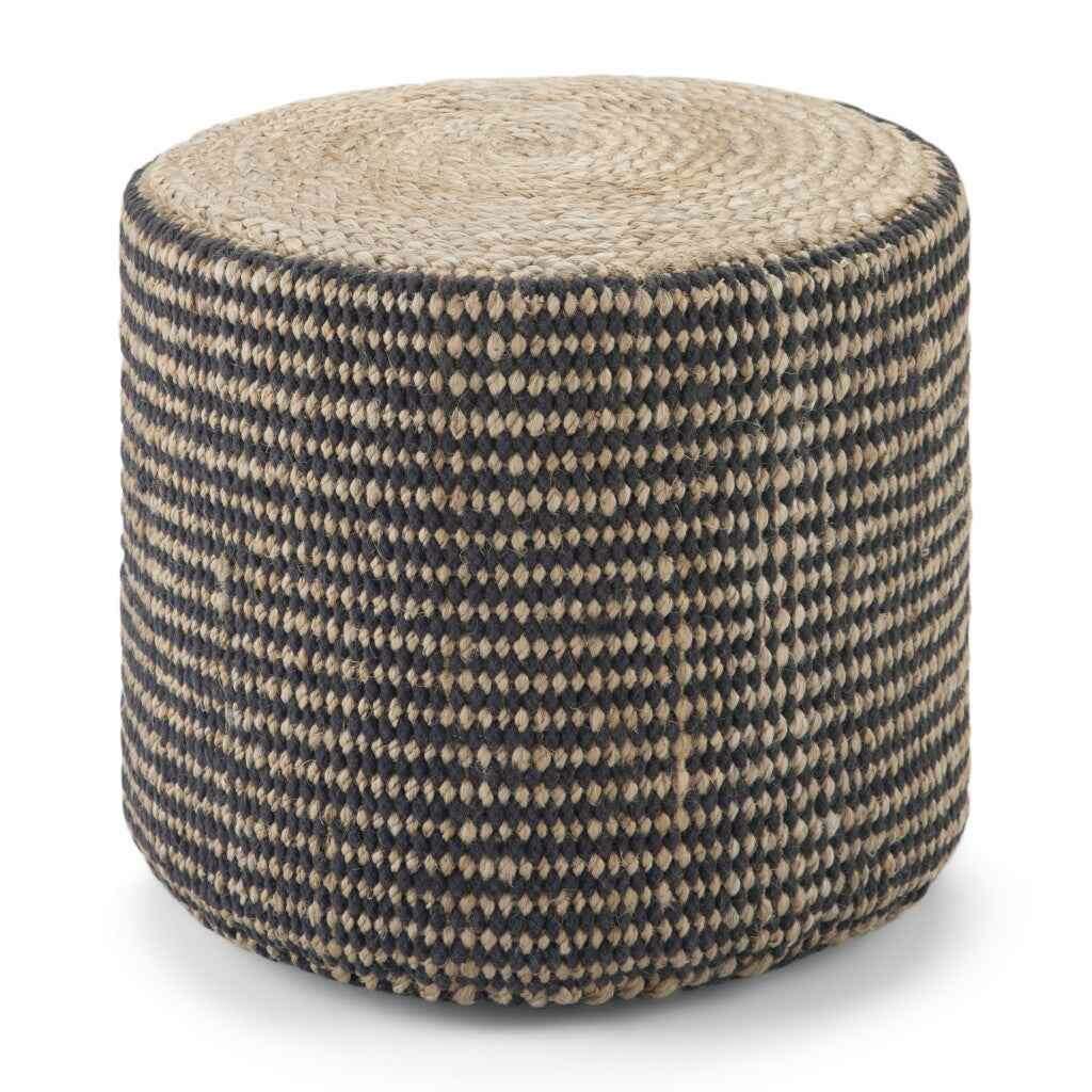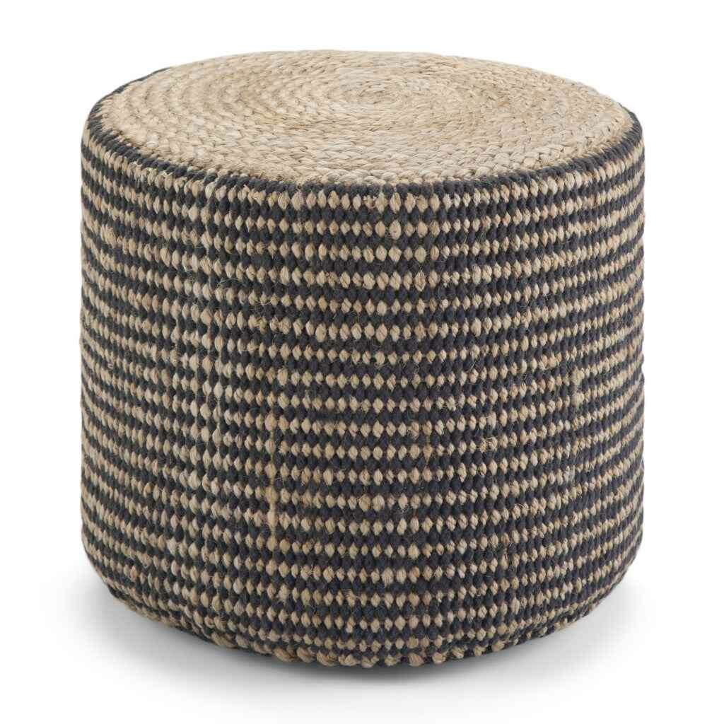 18" Brown Jute Round Pouf Ottoman Zum Inhalt springen