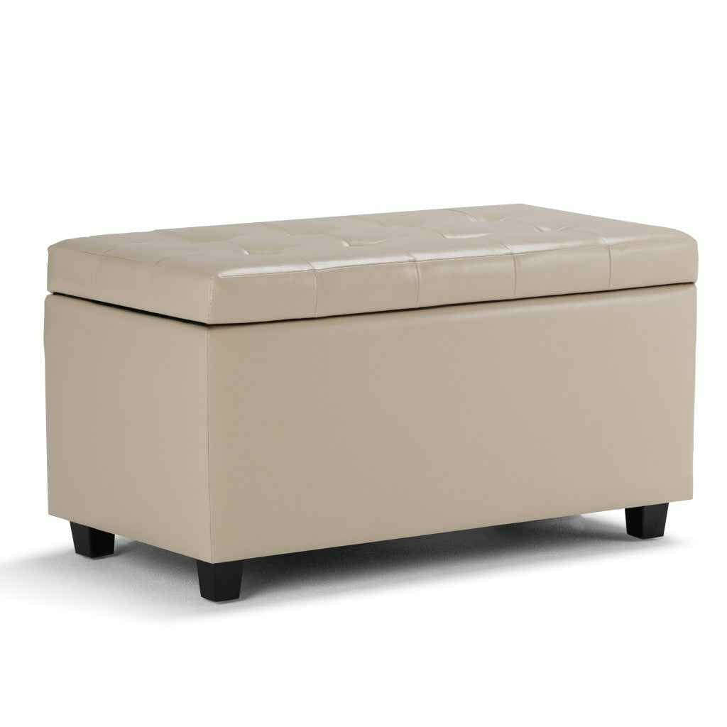 34" Dark Brown and Cream Upholstery Storage Ottoman