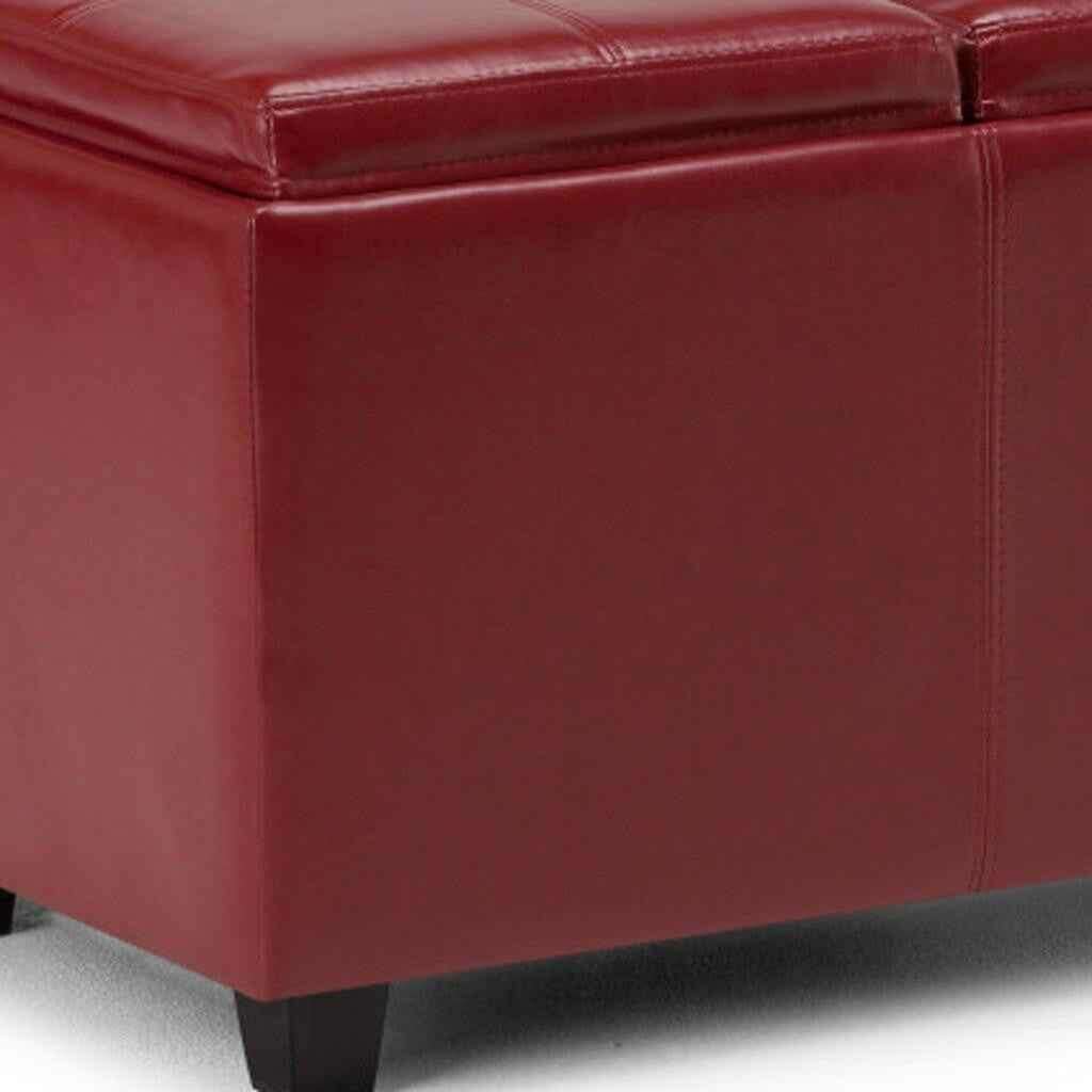 42" Dark Brown and Red Upholstery Storage Ottoman