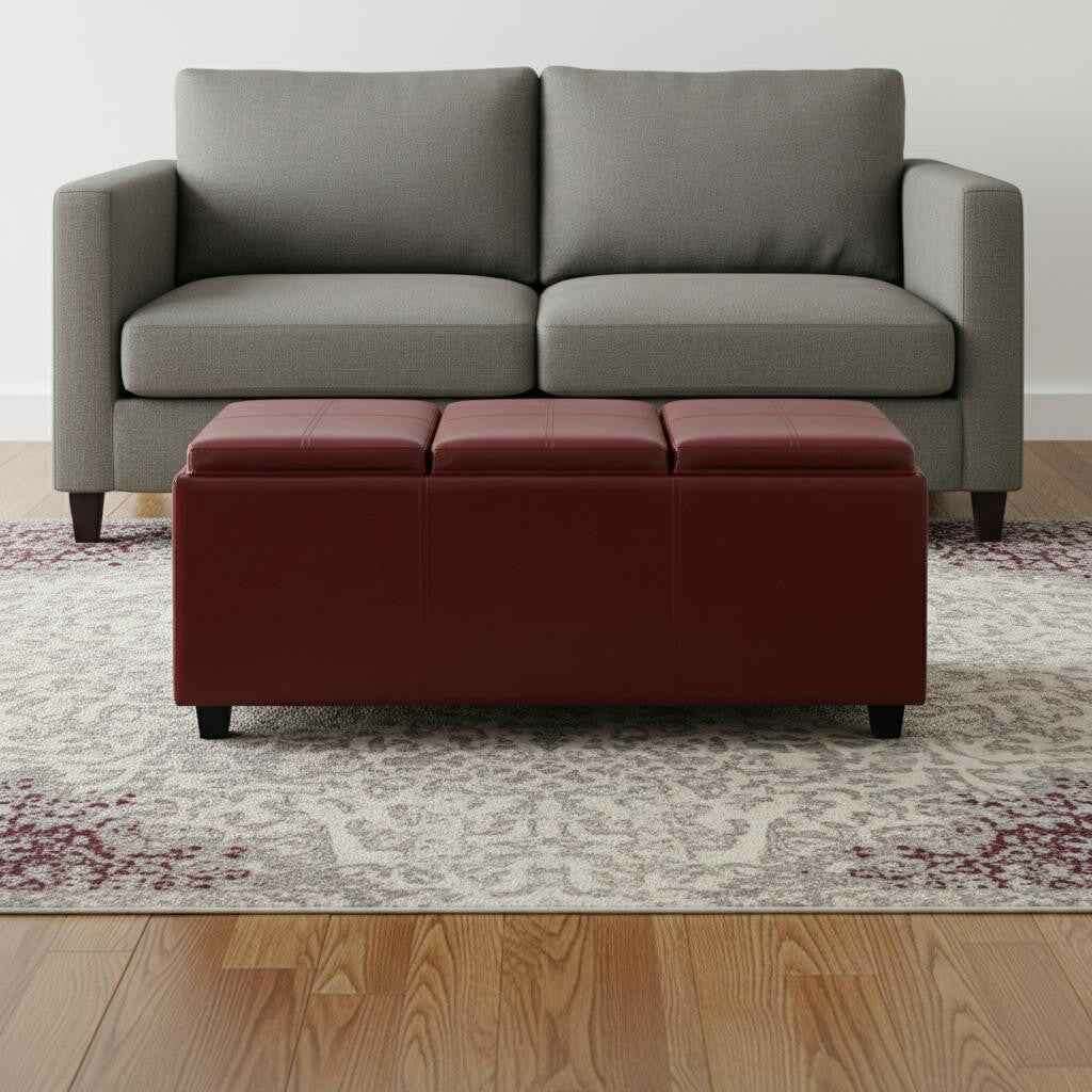 42" Dark Brown and Red Upholstery Storage Ottoman Zum Inhalt springen