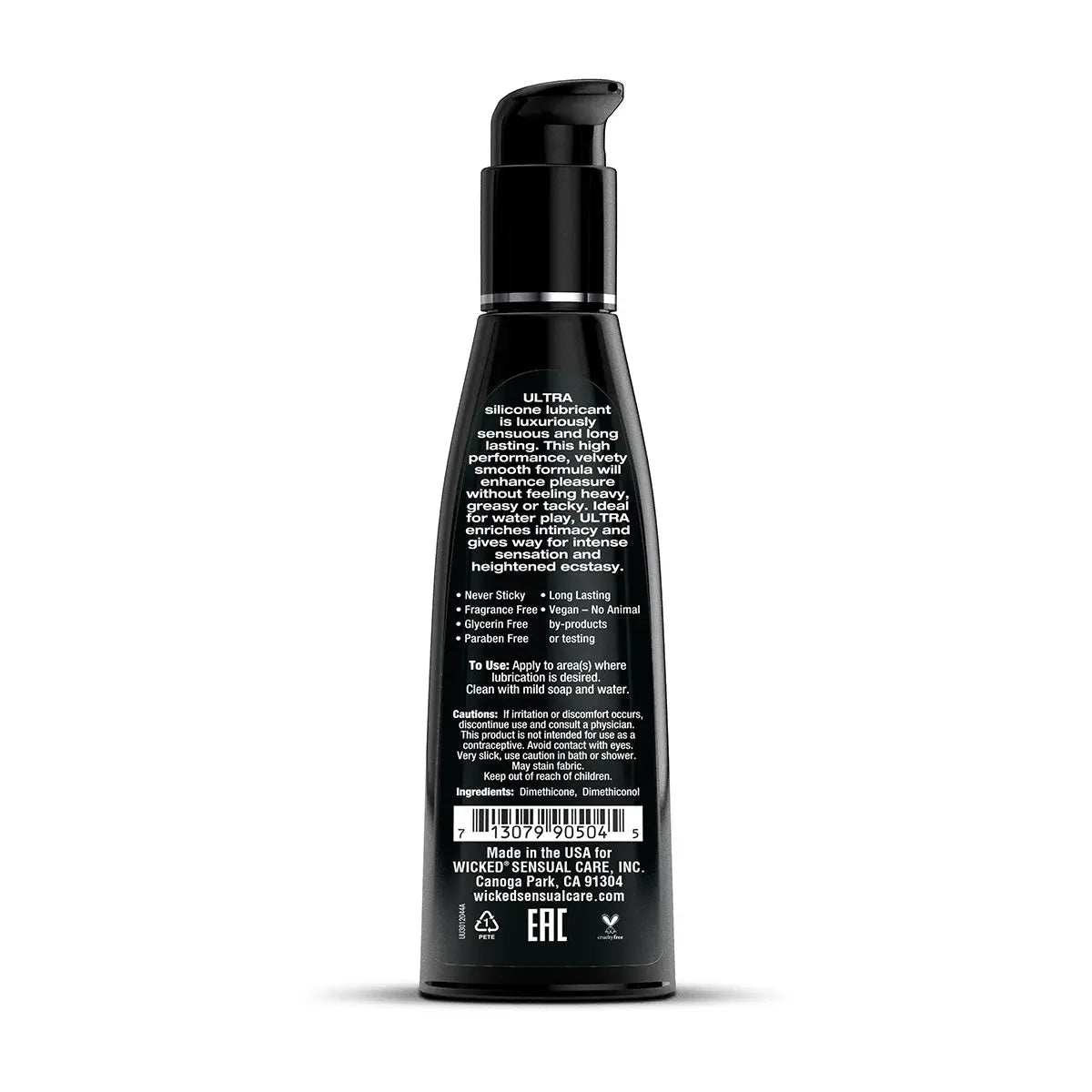 Ultra silicone lubricant is luxuriously sensuous and long lasting. This high performance, velvety smooth formula will enhance pleasure without feeling heavy, greasy, or tacky. Formulated with the highest quality silicone available in the personal care market today, Ultra Fragrance-free contains no additives or fillers for an exceptionally silky feel. Ideal for water play, Ultra enriches intimacy and gives way for intense sensation and heightened ecstasy.