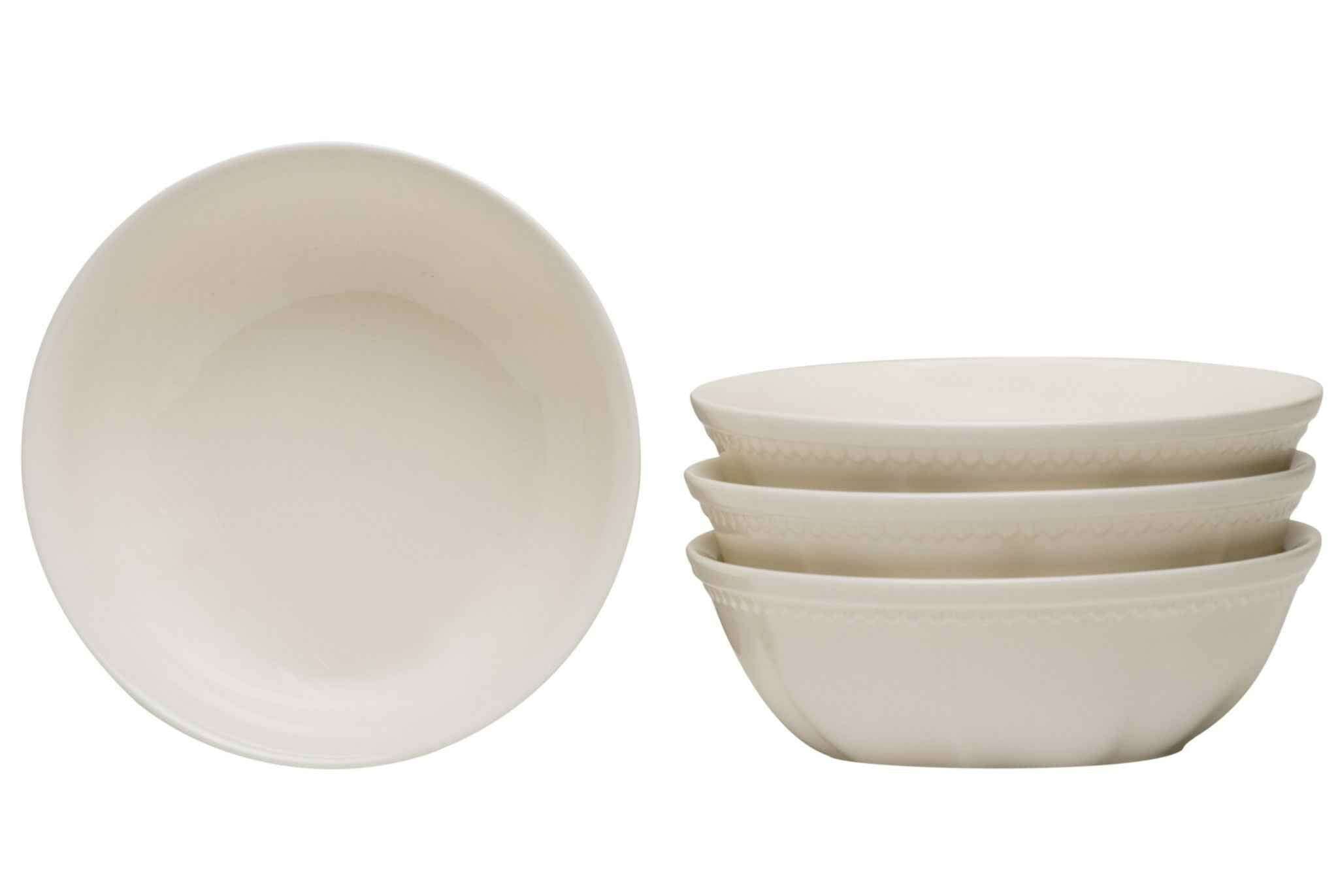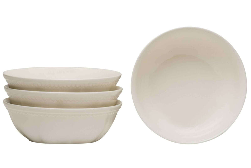 White Four Piece Round Scallop Stoneware Service For Four Bowl Set