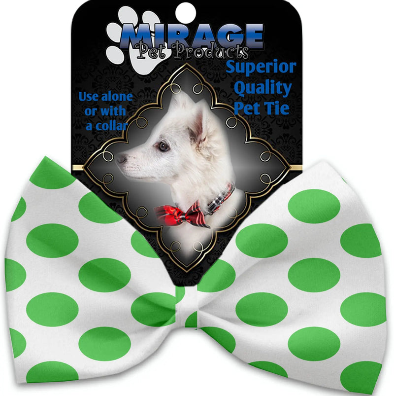 White And Green Dotted Pet Bow Tie Collar Accessory With Velcro Default Title