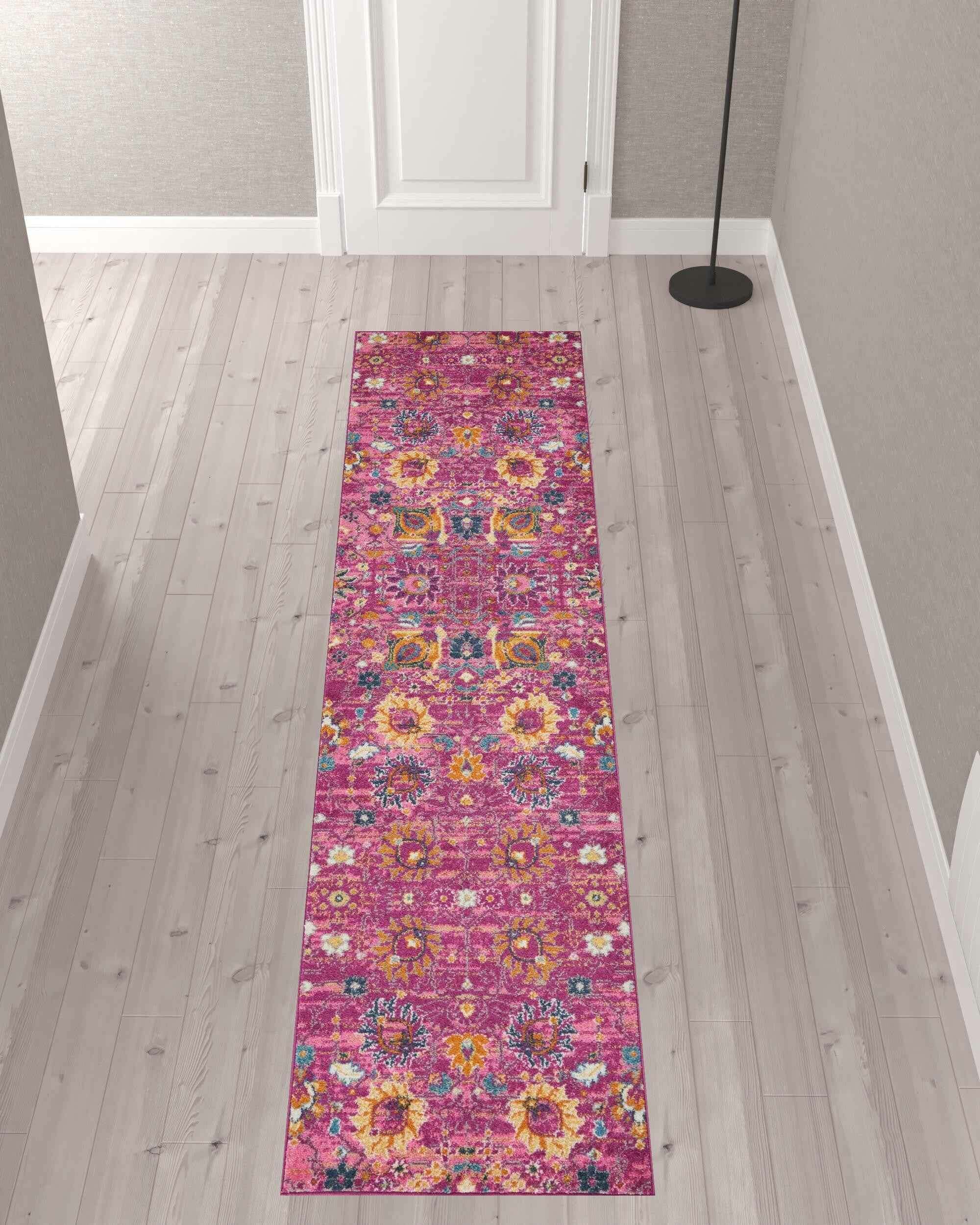 10' Pink Floral Power Loom Runner Rug
