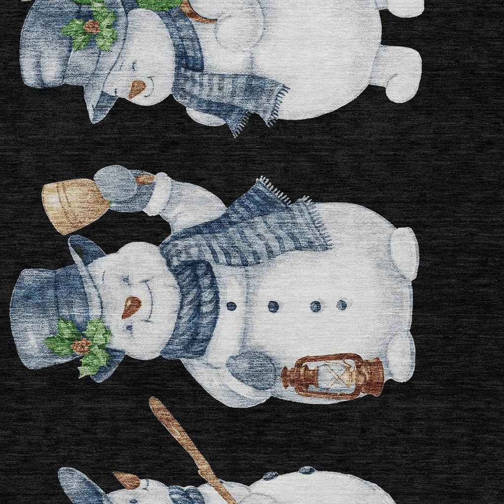10' X 14' Black Denim Blue And Ivory Botanical Leaves Washable Indoor Outdoor Area Rug