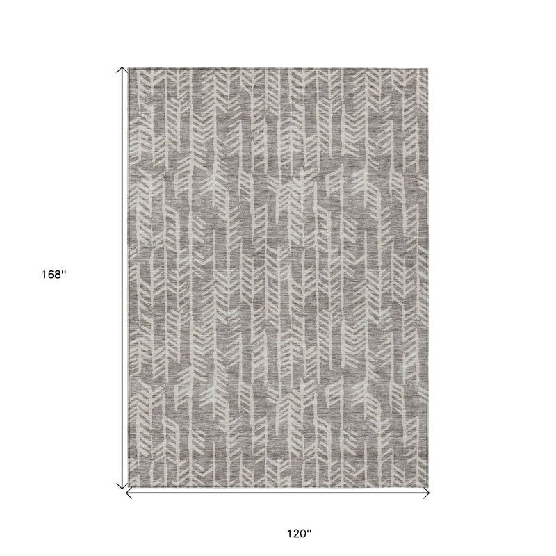 10' X 14' Taupe And Beige Tribal Washable Indoor Outdoor Area Rug