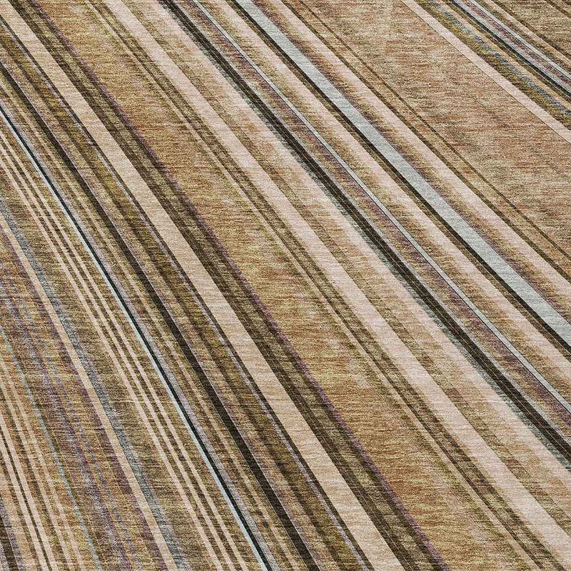 10' X 14' Taupe Beige And Brown Striped Washable Indoor Outdoor Area Rug