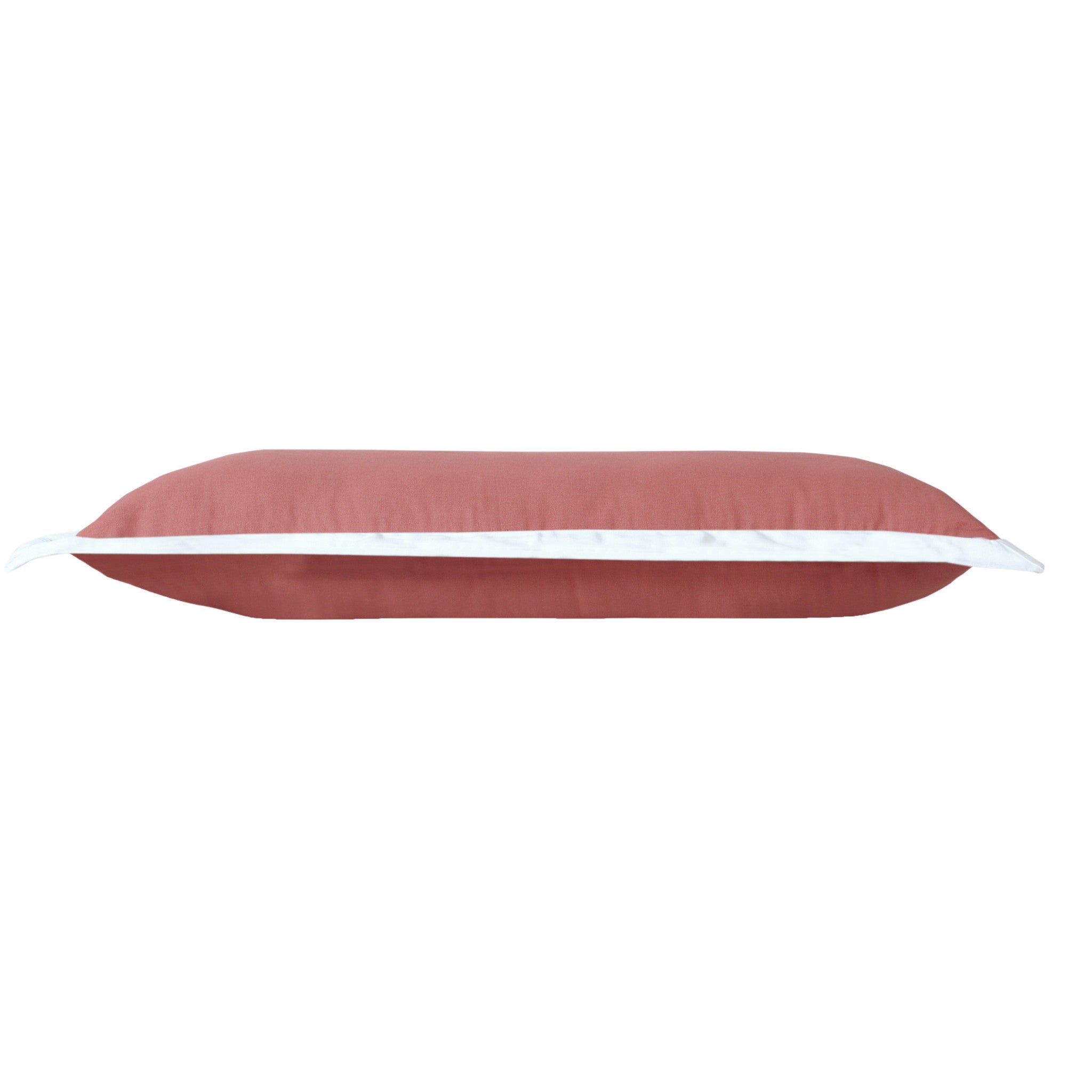 Unique and decorative, this comfortable 14" x 36" deep coral and white 100% cotton geometric zippered pillow will leave a lasting impression. The deep coral and white coloring of the soft and long lasting 100% cotton will add dimension and texture to your space. Decorative throw pillows not only add color and dimension to your space but can be comfy and supportive when you are lounging and cuddling as well. Decorative pillows are a great way to change up the look and feel of your space easily and quickly. 14" H x 14" W x 36" D