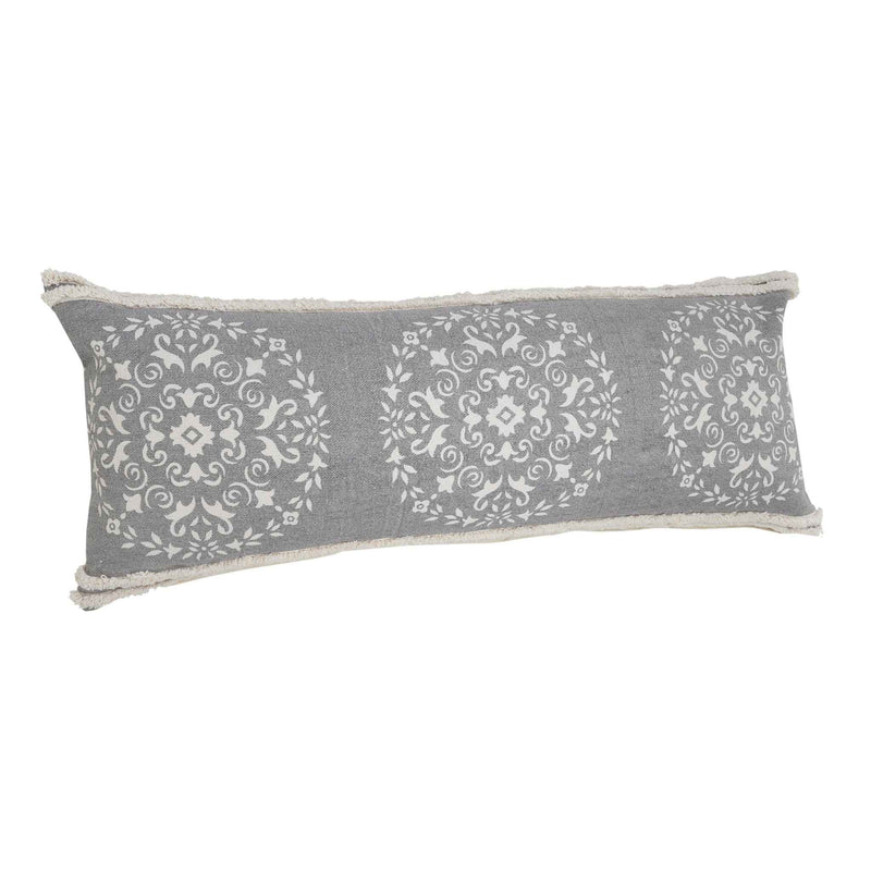 This 14" x 36" gray and white 100% cotton geometric zippered pillow will add a beautiful decorative accent to your decor. This super soft decorative pillow is expertly made of high grade, long lasting 100% cotton in a gray and white coloration. Decorative throw pillows not only add color and dimension to your space but can be comfy and supportive when you are lounging and cuddling as well. A great decorative accessory for your favorite chair, to accent your sofa, or to use as part of your bed ensemble. 14" H x 14" W x 36" D