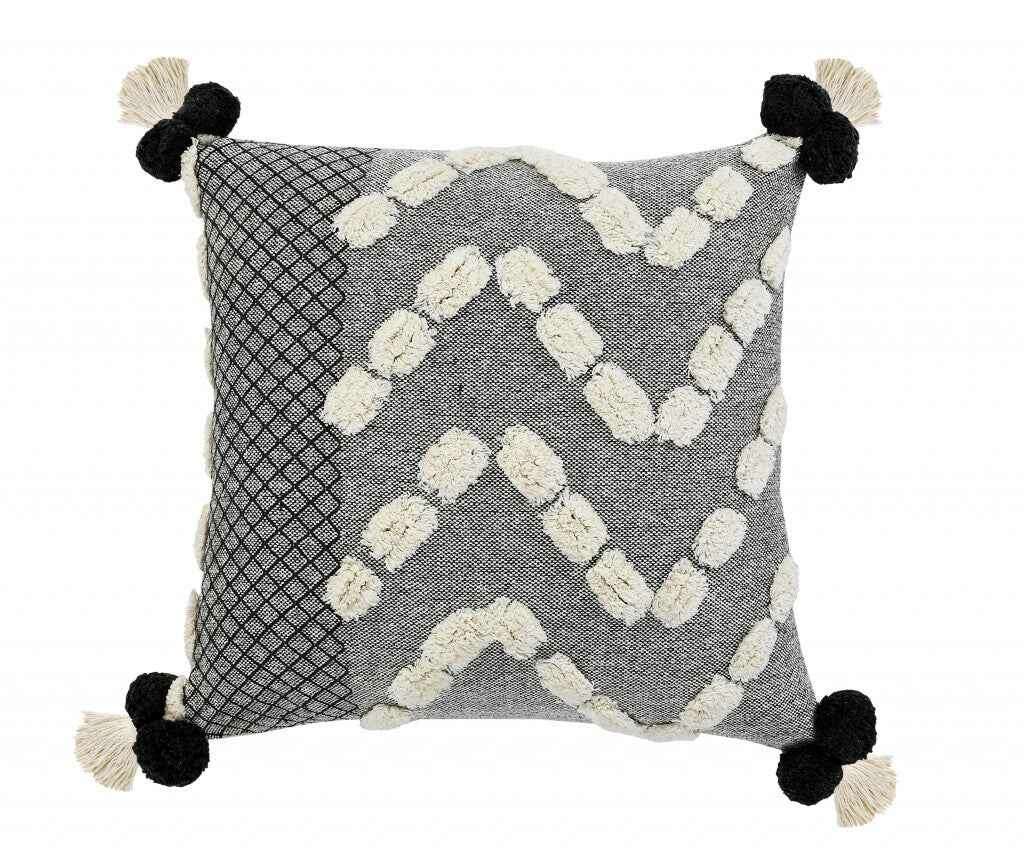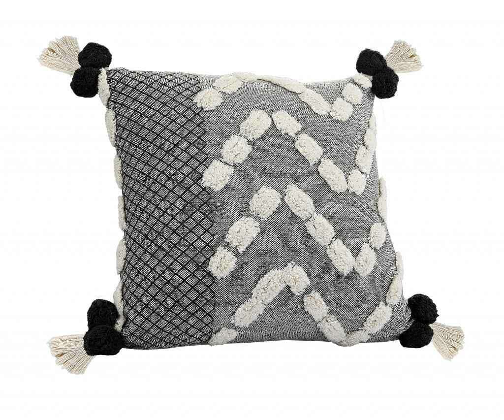 20" X 20" Black Gray And Cream 100% Cotton Geometric Zippered Pillow
