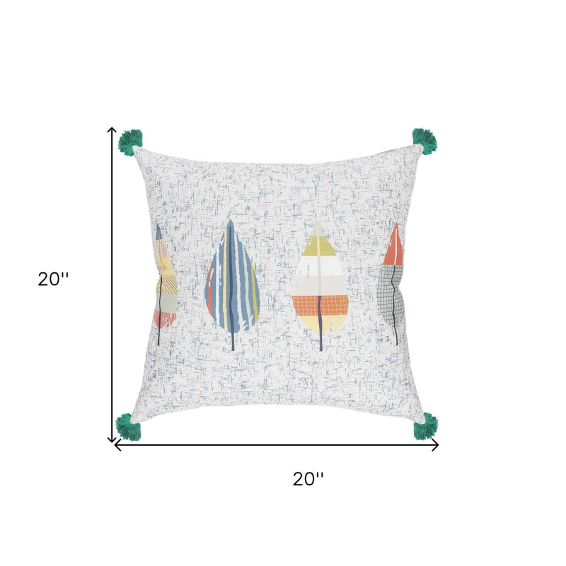 20" X 20" White Blue And Green Polyester Geometric Zippered Pillow