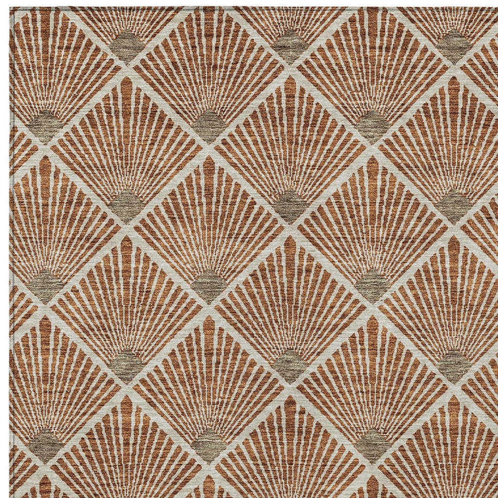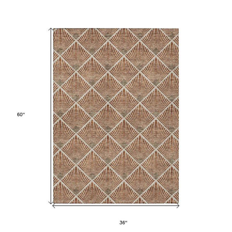 3' X 5' Brown Copper And Beige Geometric Washable Indoor Outdoor Area Rug