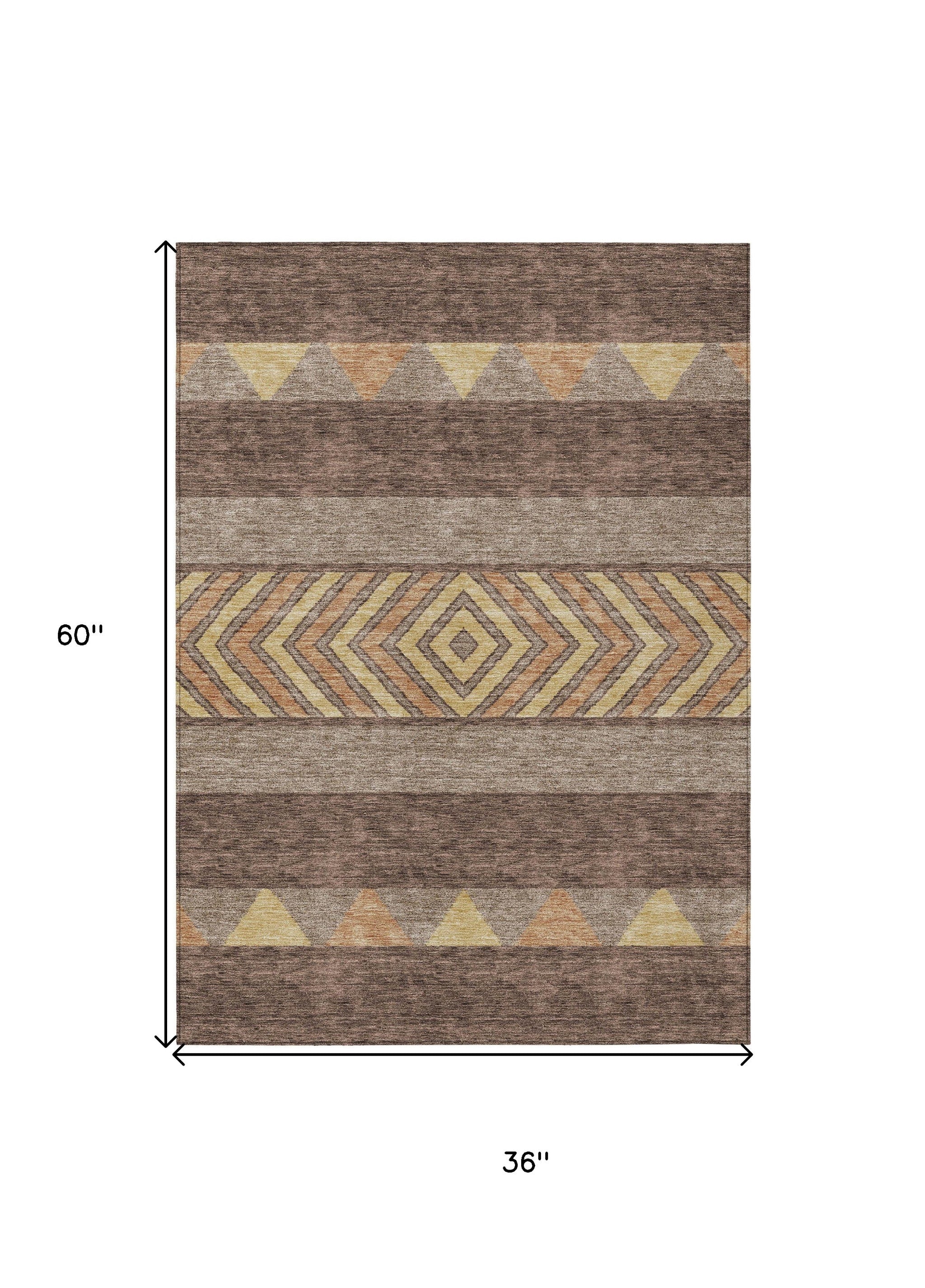 3' X 5' Brown Wheat And Copper Southwestern Washable Indoor Outdoor Area Rug