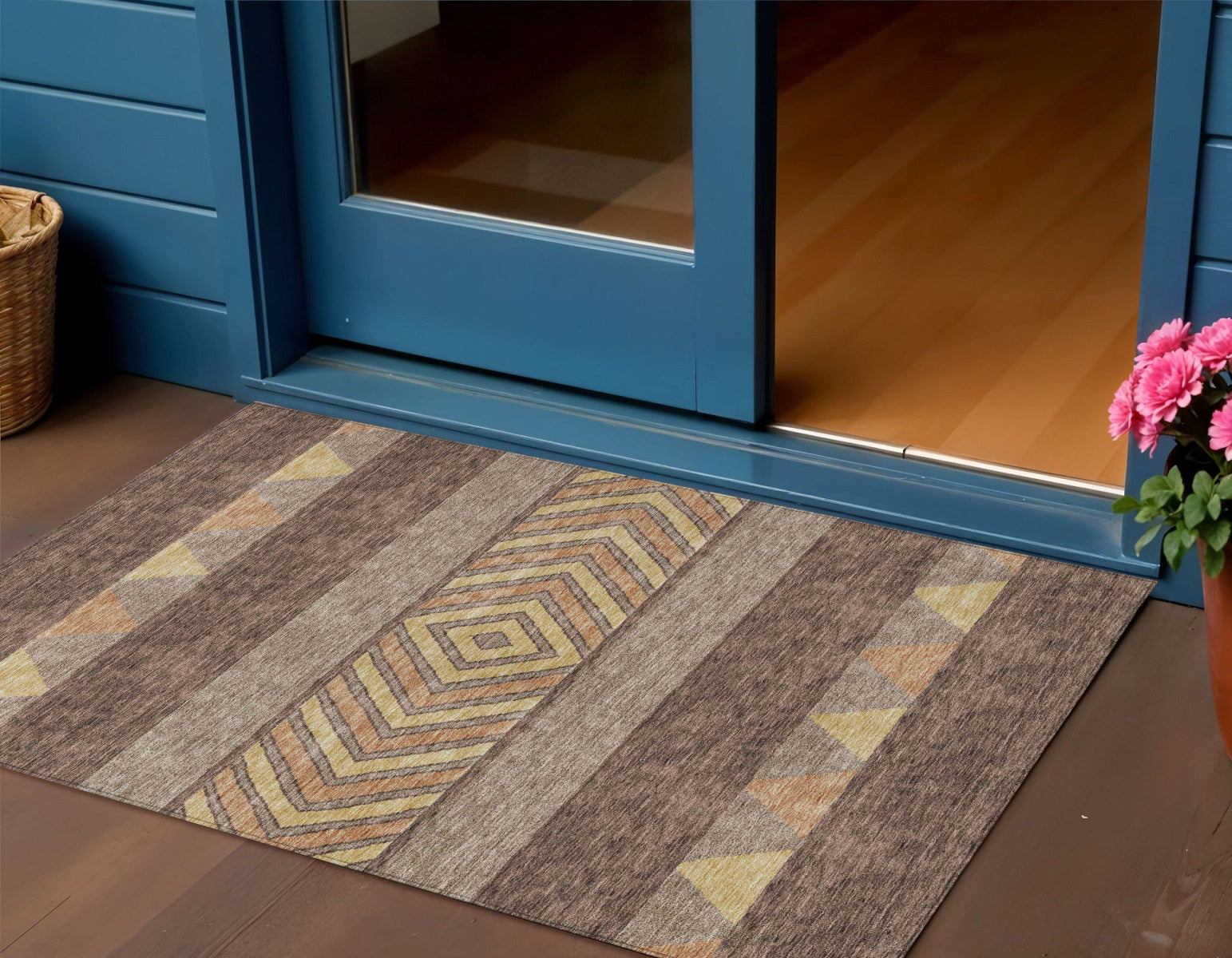 Add some artistry to your room with this 3-foot x 5-foot brown wheat and copper southwestern washable indoor outdoor area rug. This rectangle shaped rug features a southwestern design that will work well both indoors or out. A classic shape marries with good looking design for your living room, hall, bedroom, porch, patio, or poolside. Ideal for outdoor spaces or high traffic areas with kids and pets, this rug is made from heavy duty polyester that is stain resistant to help repel water, dirt, and stains. Versatile in use, durable, and easy to maintain, this rug is an ideal solution to add a decorative and inviting touch to your indoor or outdoor space. 36-inch h x 60-inch w x 0.19-inch d.