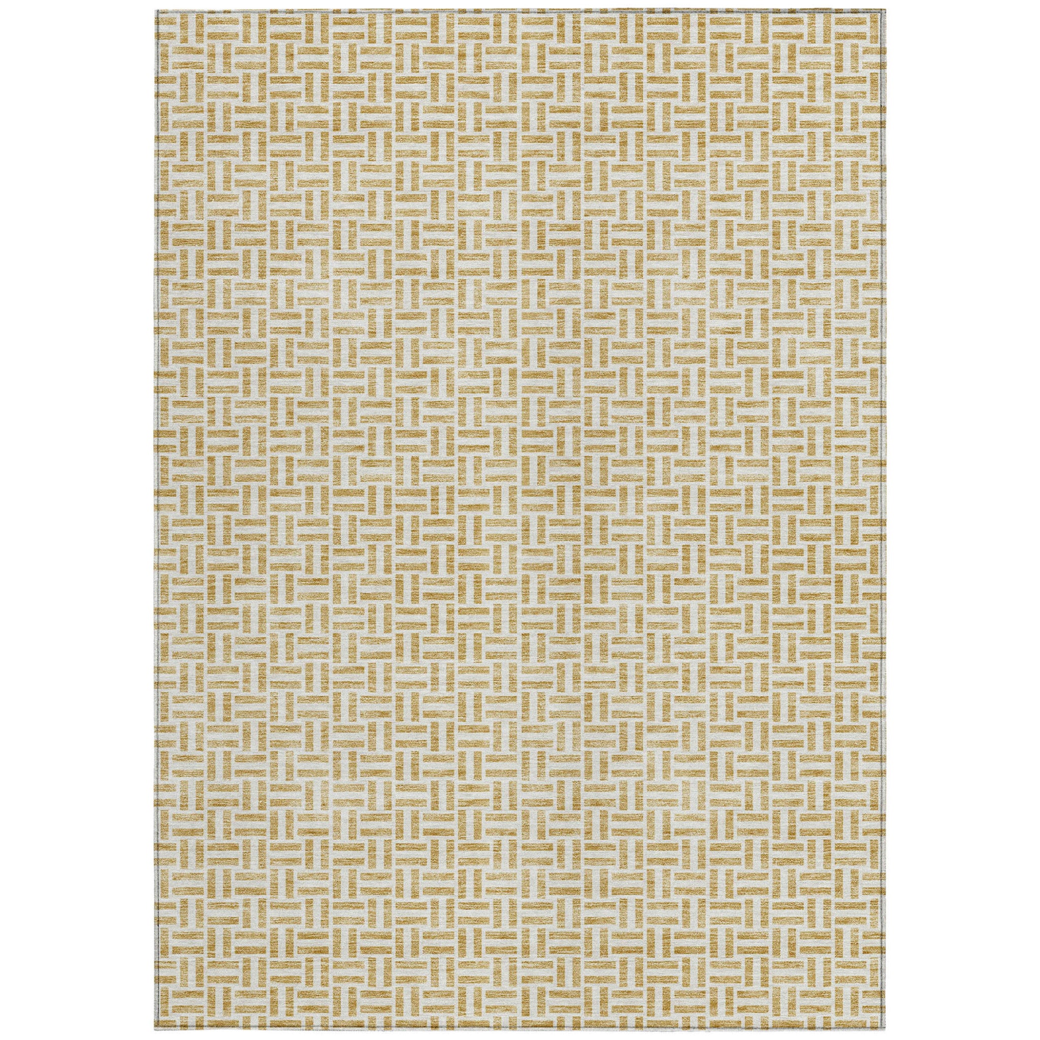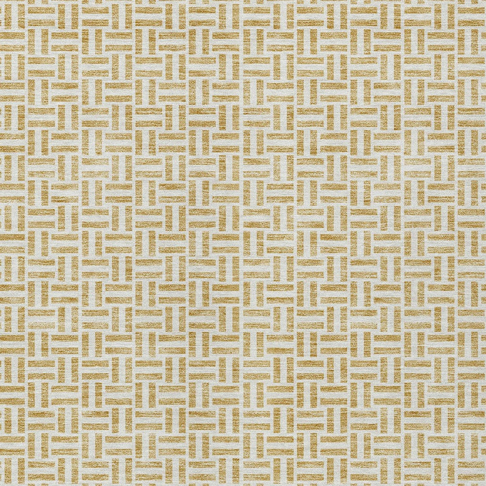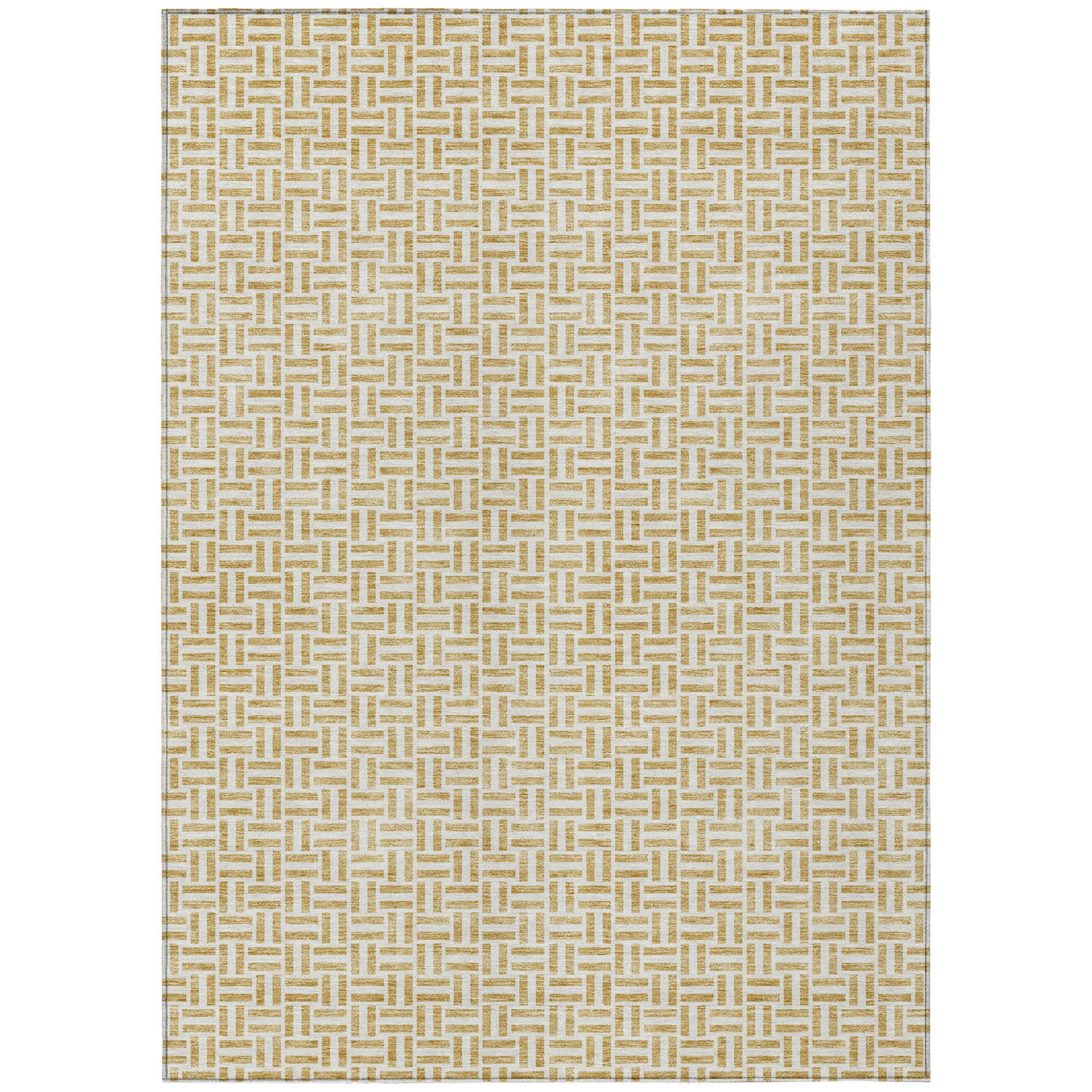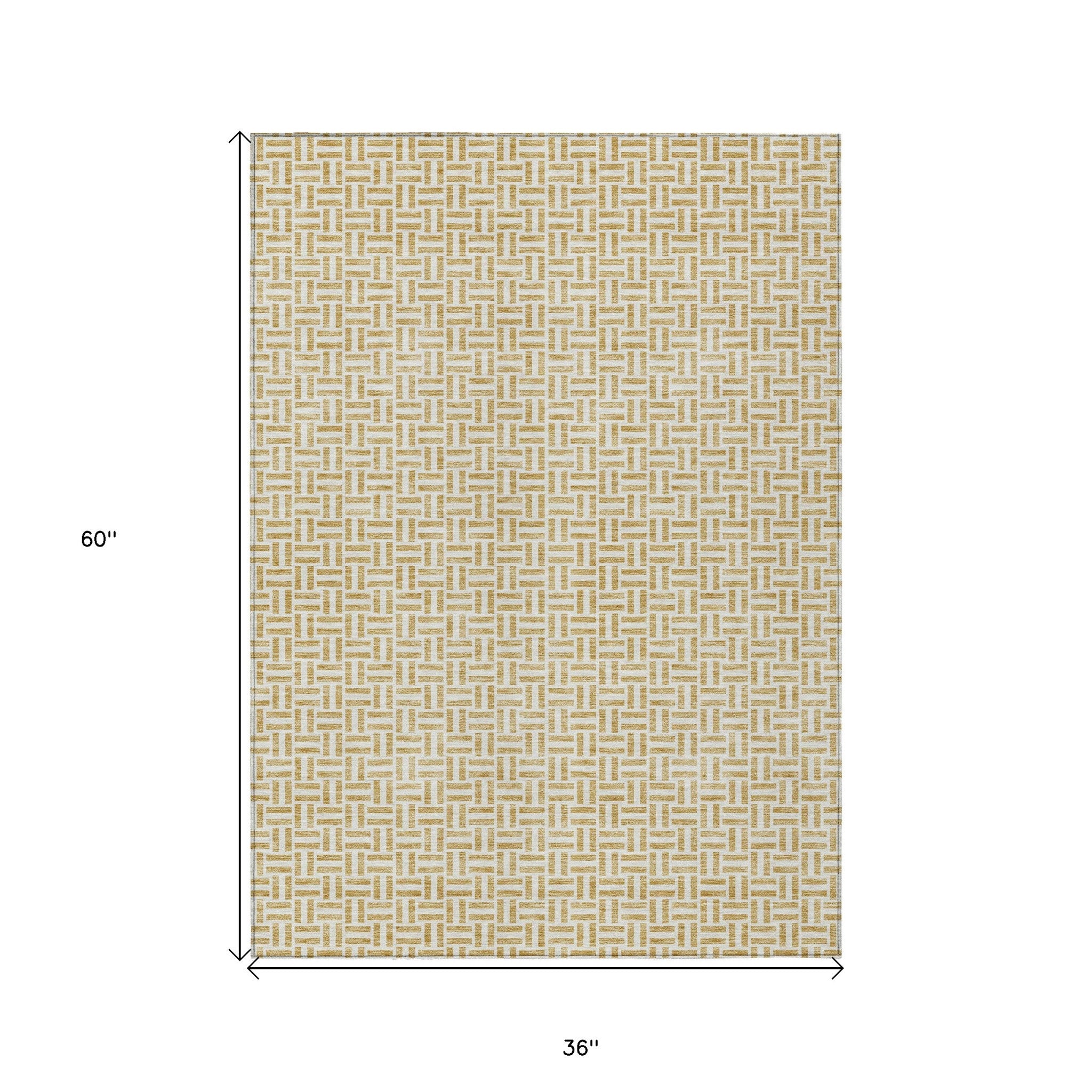 3' X 5' Gold And Ivory Geometric Washable Indoor Outdoor Area Rug