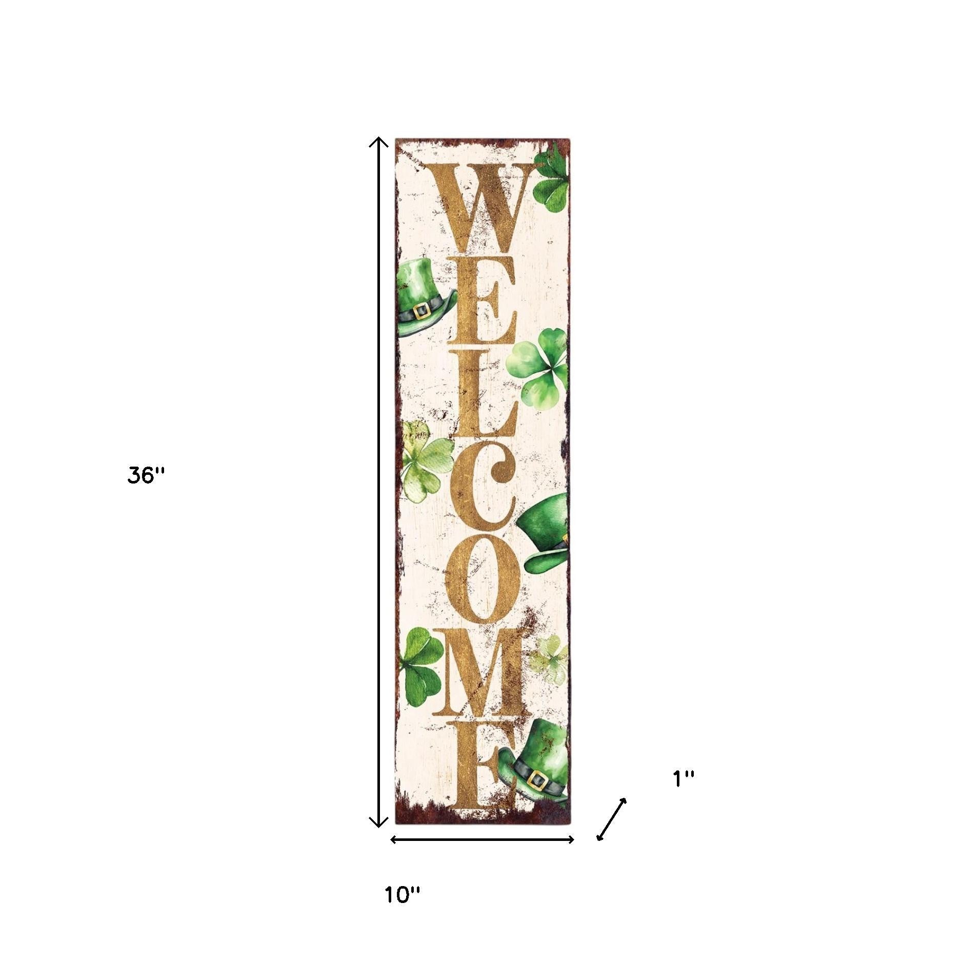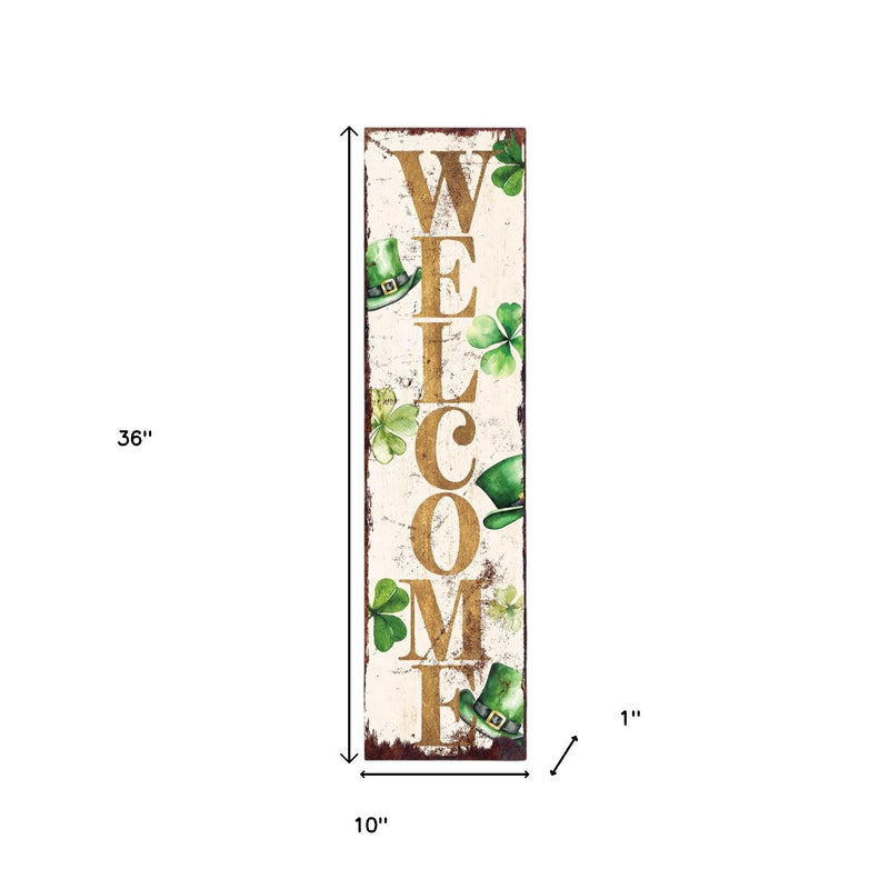 36" Green Gold And Cream Solid Wood Welcome St Patrick's Day Porch Sign
