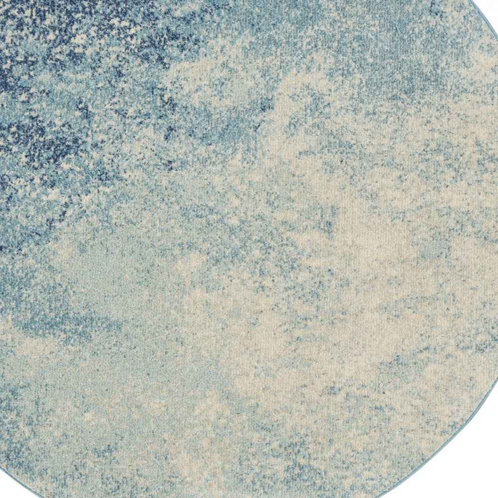 Set an inviting tone in your space with this 4' ivory and blue round abstract power loom area rug. This geometric round shaped rug features a abstract pattern in ivory and blue that combines a good looking print with a unique and updated shape. The mix of shape, color, and design gives this rug refreshing visual interest. Made in Turkey, this rug offers high quality combined with good looking designer sensibilities. Place this area rug against a hardwood or tile floor and it will enliven your living space with style and sophistication. 1" H x 48" W x 48" D