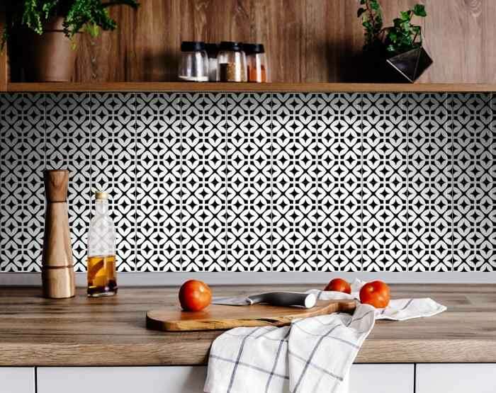 4" X 4" Black and White Pinna Peel and Stick Removable Tiles