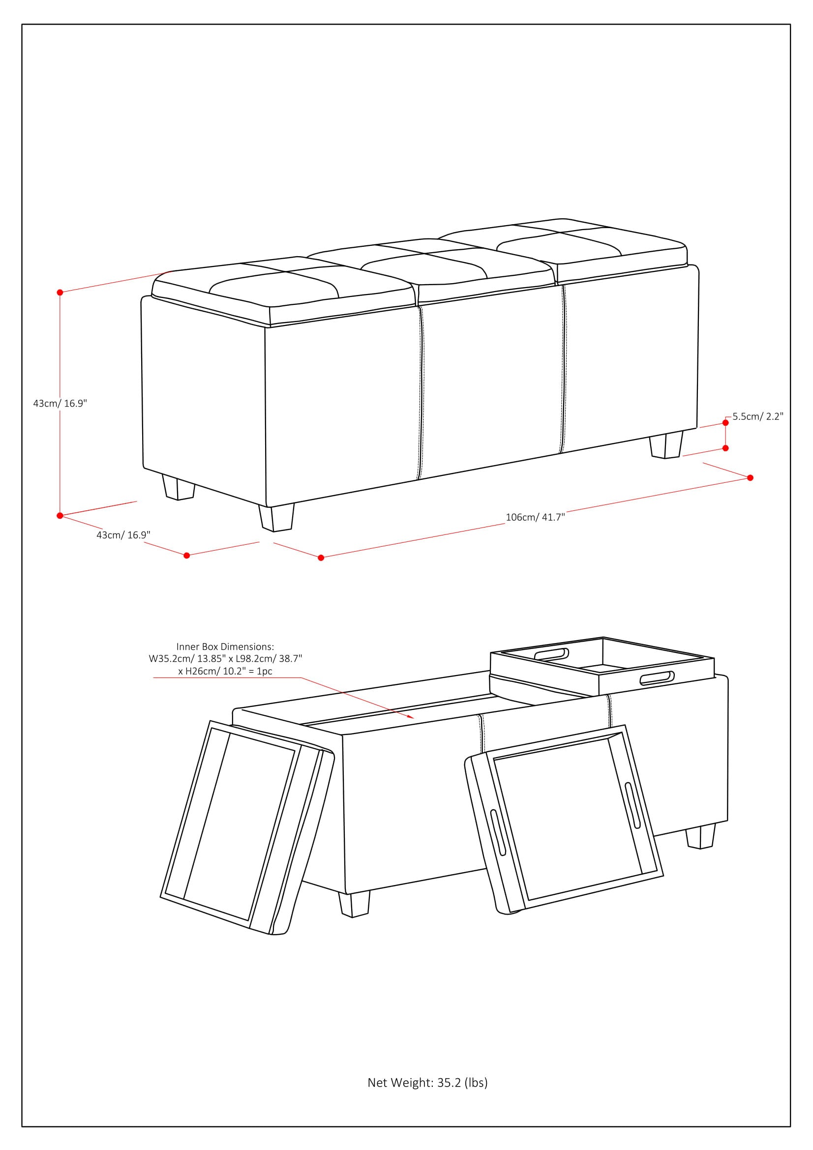 42" Dark Brown and Cream Upholstery Storage Ottoman