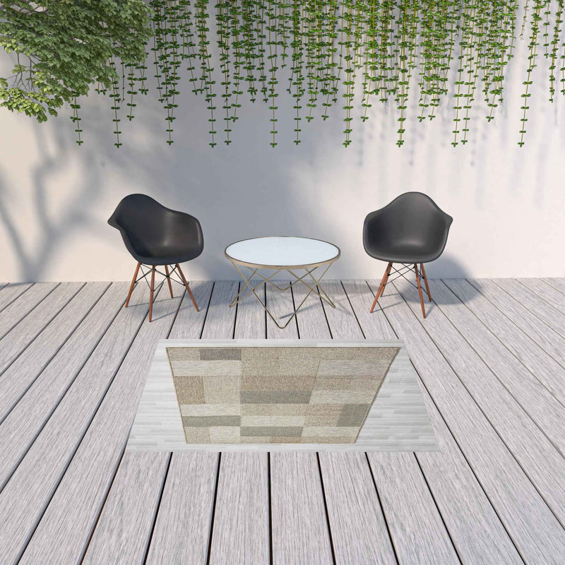 5' X 7' Gray Geometric Handmade Indoor Outdoor Area Rug