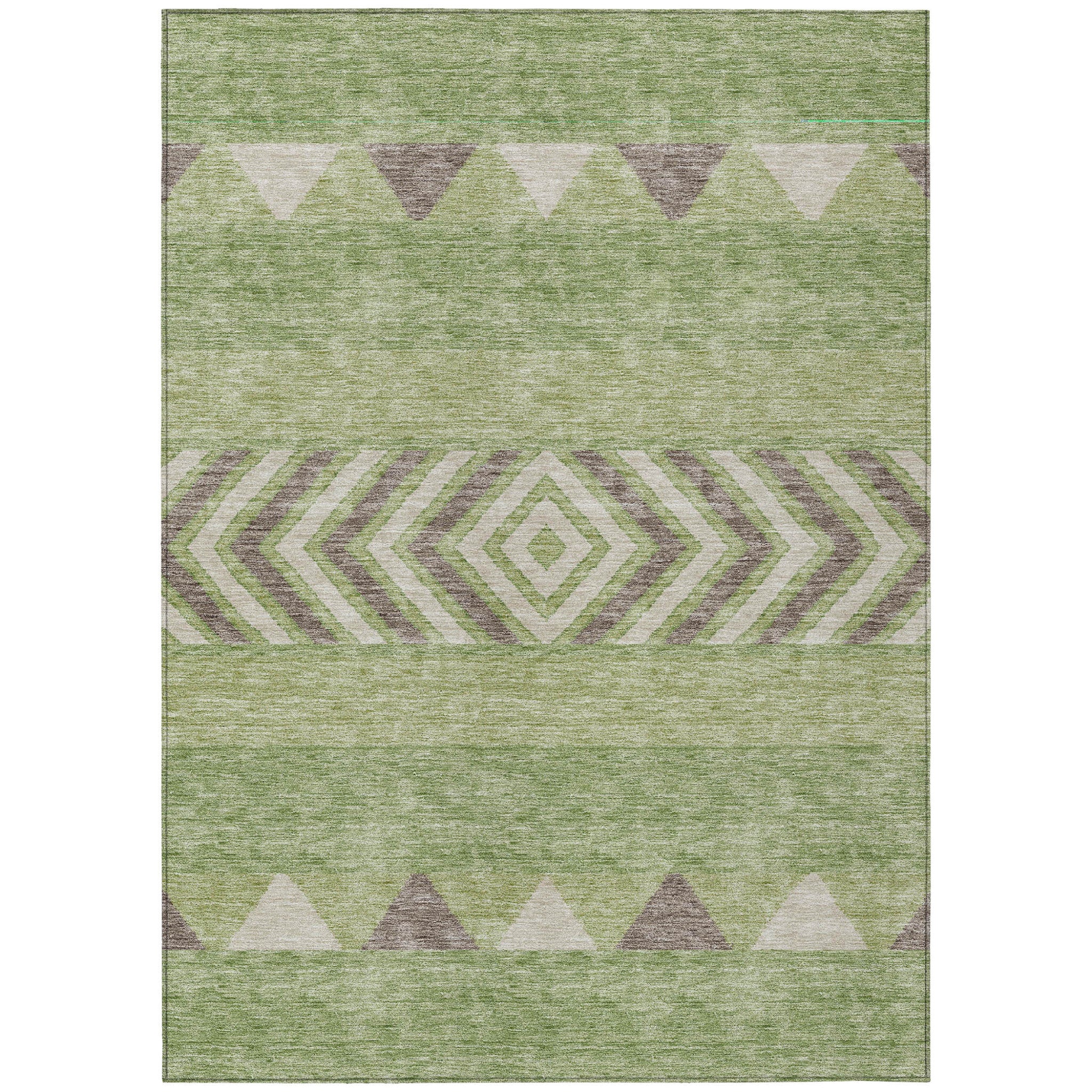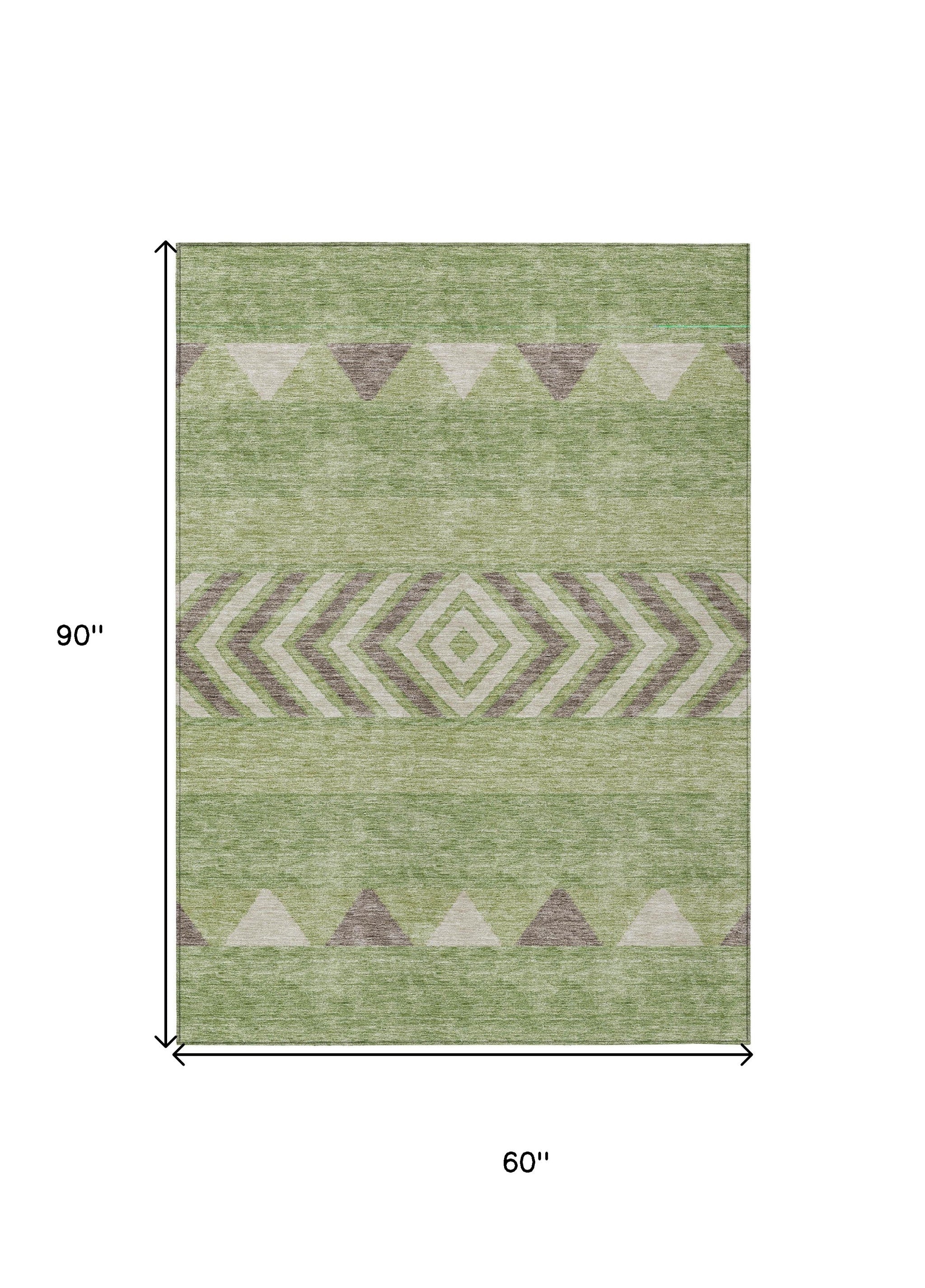 5' X 8' Green Taupe And Ivory Southwestern Washable Indoor Outdoor Area Rug