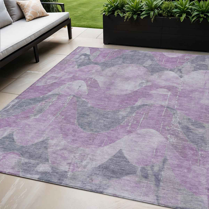 Set an inviting tone in your space with this 5-foot x 8-foot lavender and gray abstract washable indoor outdoor area rug. This rectangle shaped rug features a abstract design that will work well both indoors or out. A classic shape marries with good looking design for your living room, hall, bedroom, porch, patio, or poolside. Ideal for outdoor spaces or high traffic areas with kids and pets, this rug is made from heavy duty polyester that is stain resistant to help repel water, dirt, and stains. Versatile in use, durable, and easy to maintain, this rug is an ideal solution to add a decorative and inviting touch to your indoor or outdoor space. 60-inch h x 90-inch w x 0.19-inch d.