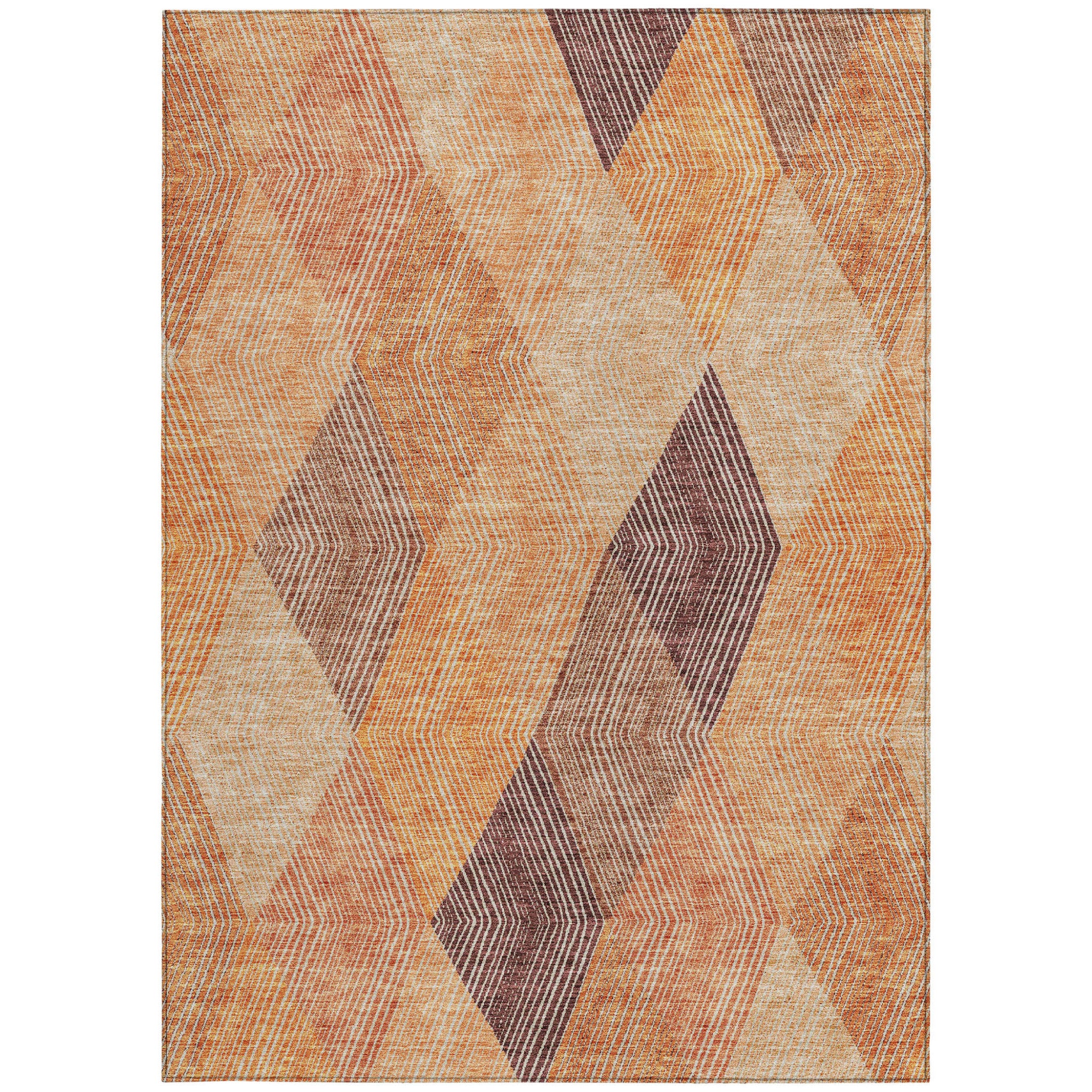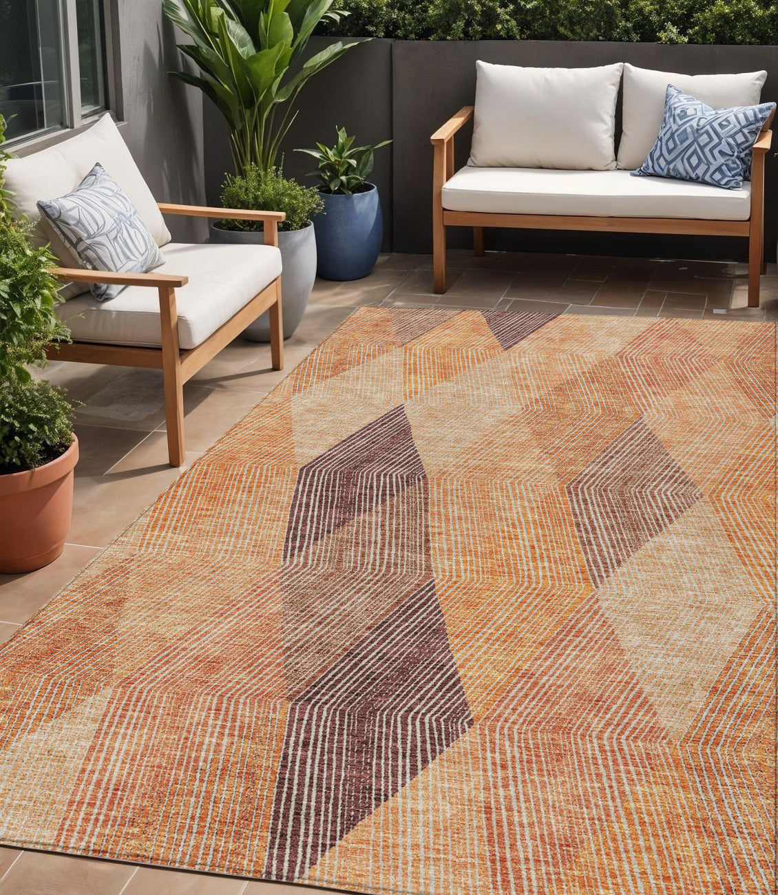 5' X 8' Orange Peach And Ruby Red Argyle Washable Indoor Outdoor Area Rug