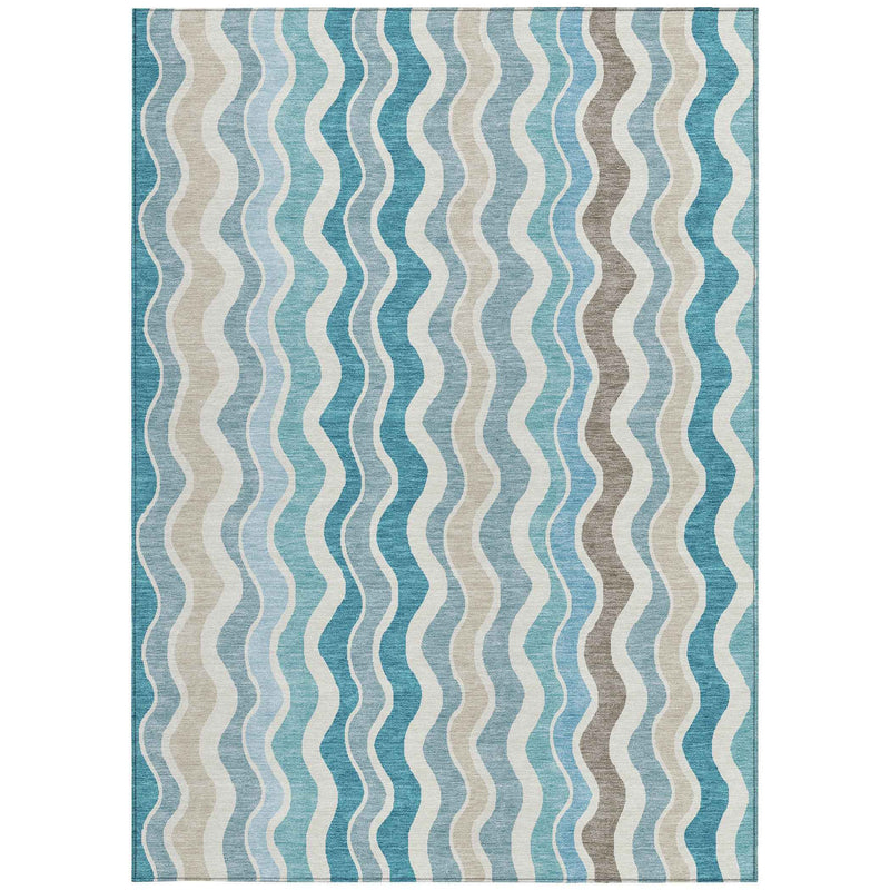 5' X 8' Teal Blue Ivory And Beige Striped Washable Indoor Outdoor Area Rug