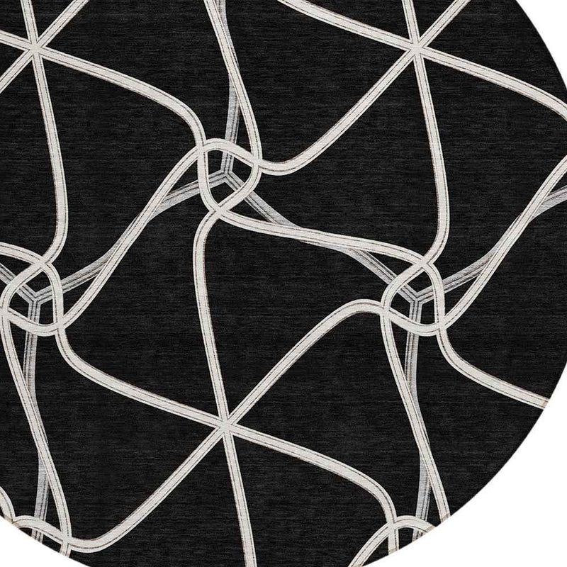 8' Black And Ivory Round Geometric Washable Indoor Outdoor Area Rug