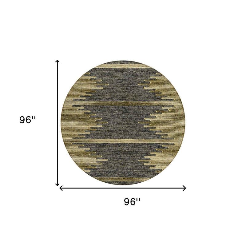 8' Dark Gray And Gold Round Abstract Washable Indoor Outdoor Area Rug