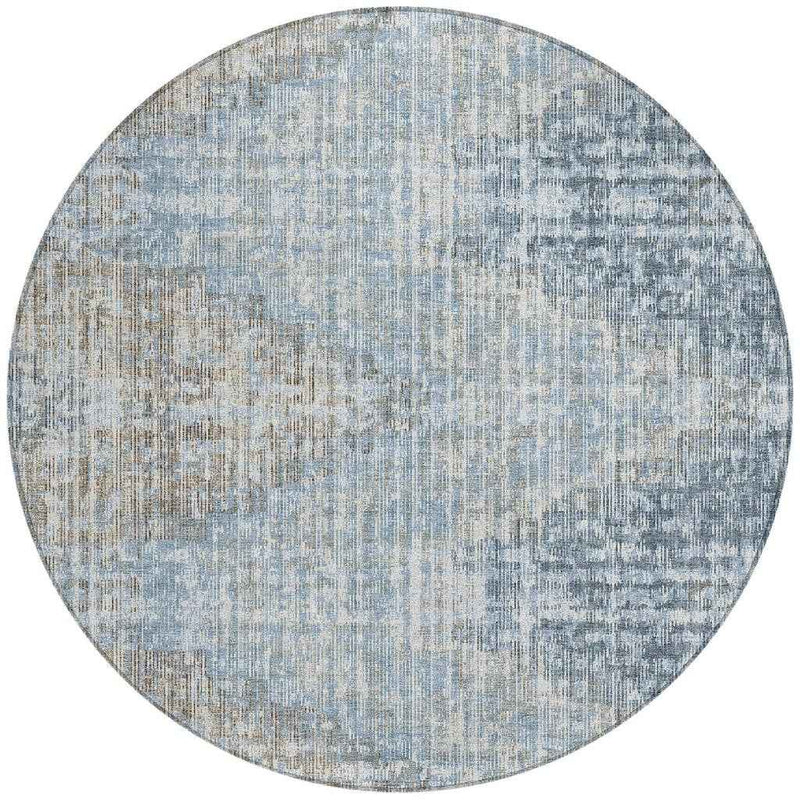 8' Denim Blue And Beige Round Geometric Washable Indoor Outdoor Area Rug