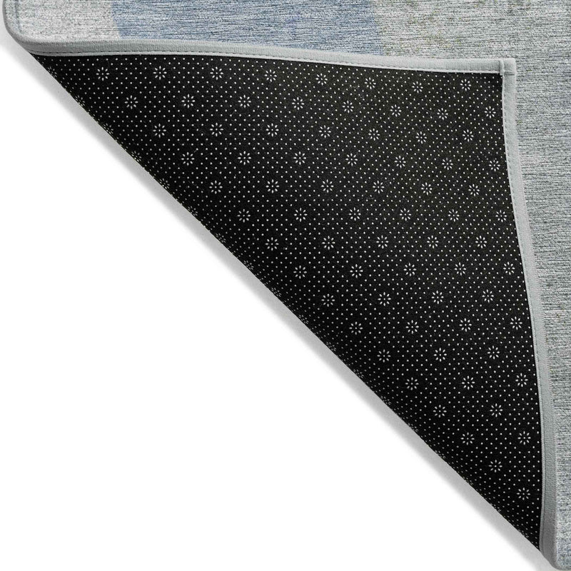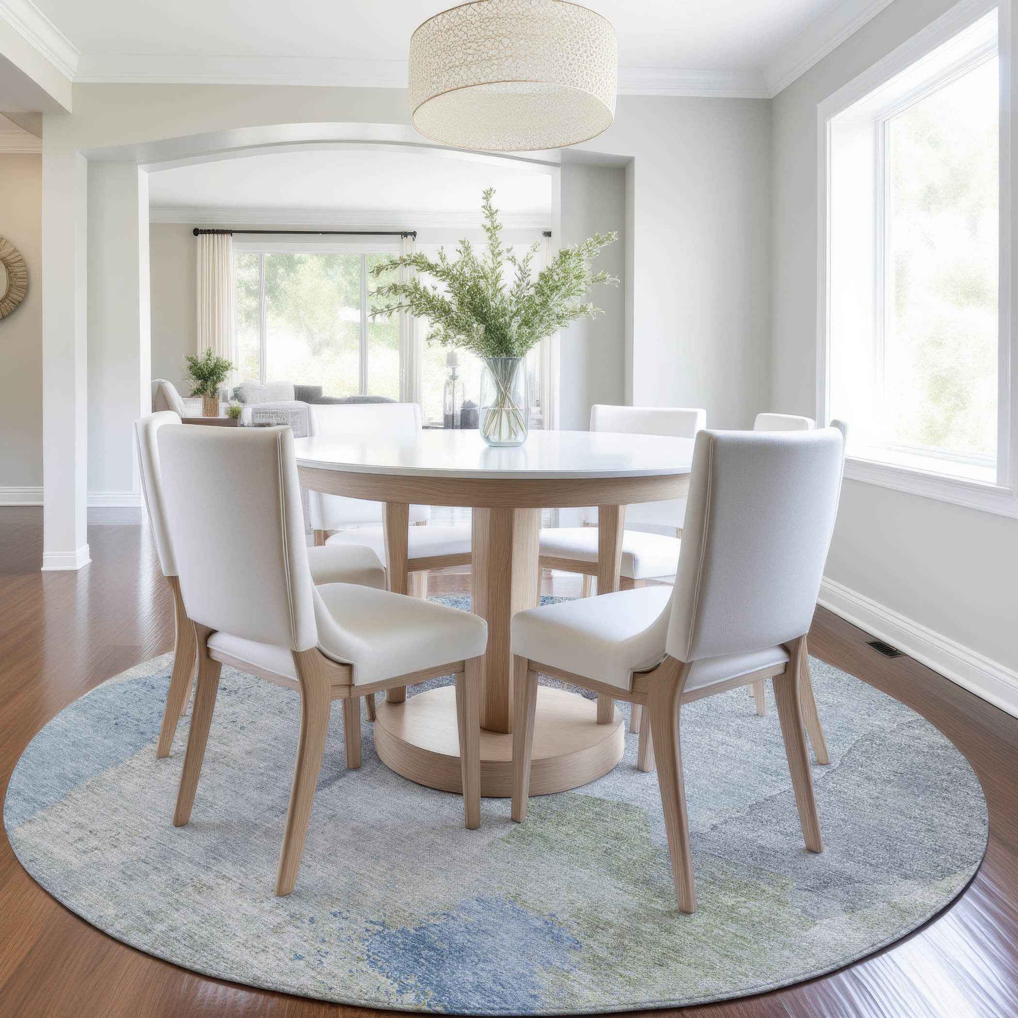 8' Denim Blue And Gray Round Abstract Washable Indoor Outdoor Area Rug