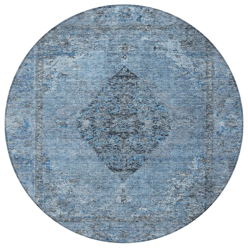 8' Denim Blue And Gray Round Medallion Washable Indoor Outdoor Area Rug